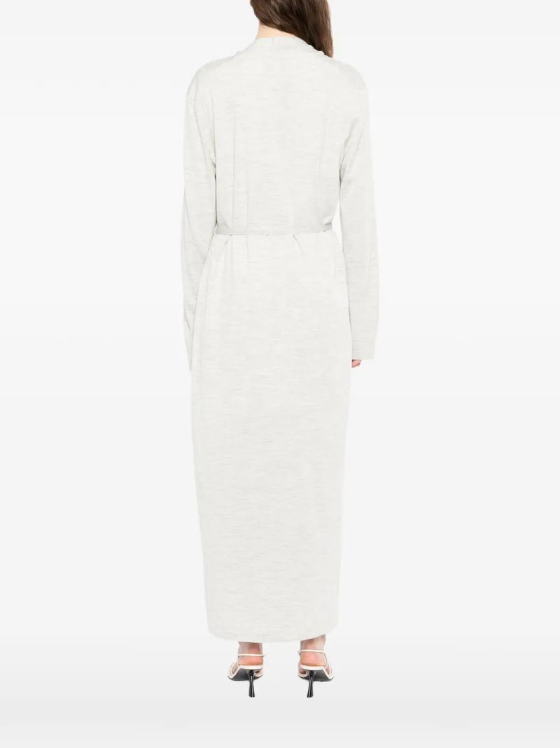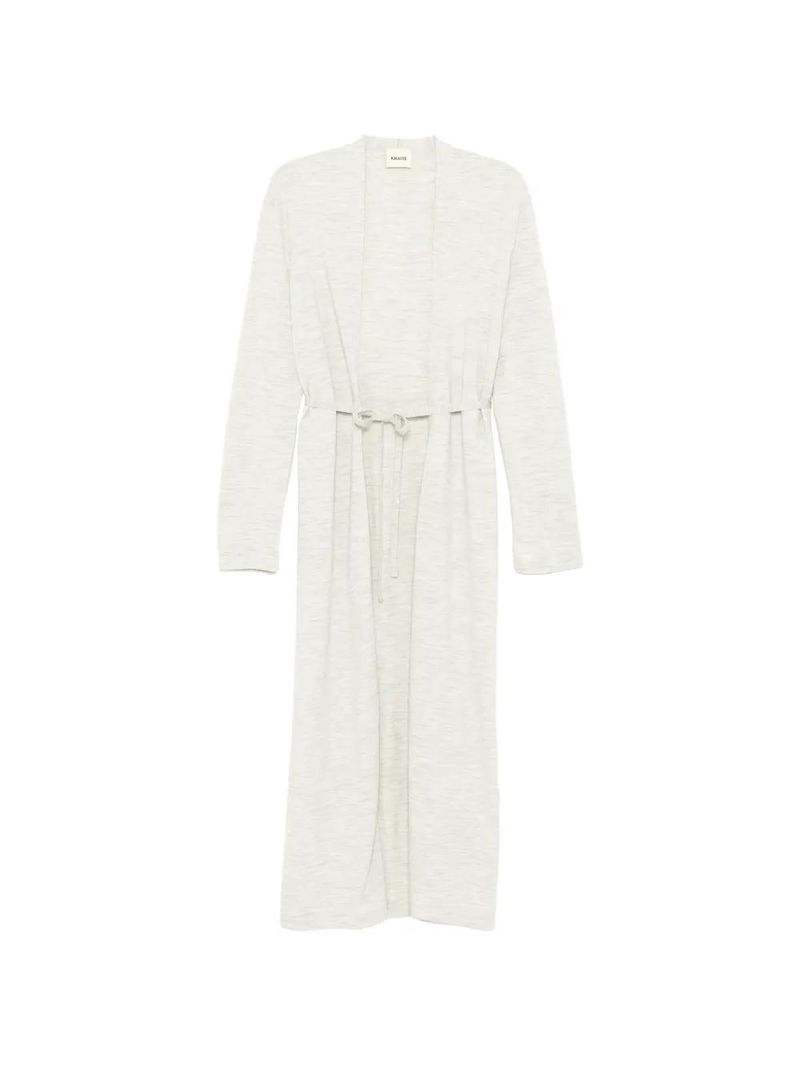 Light grey tied waist long sleeves open front.