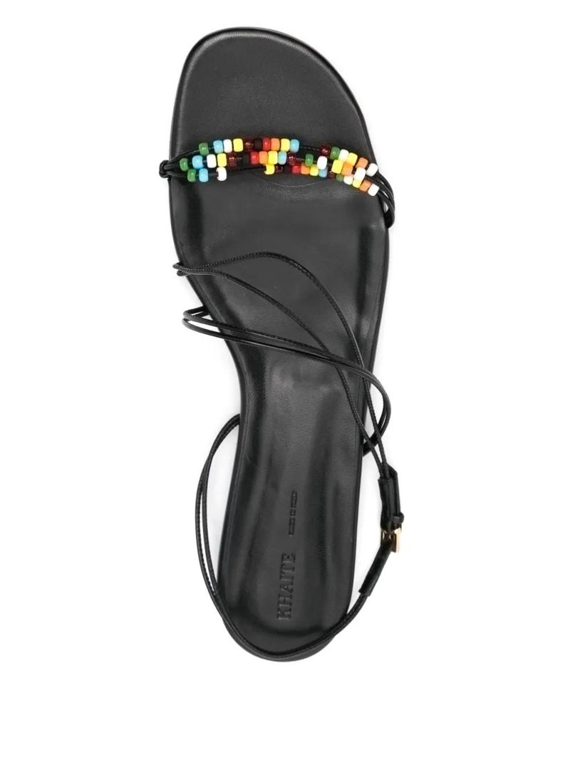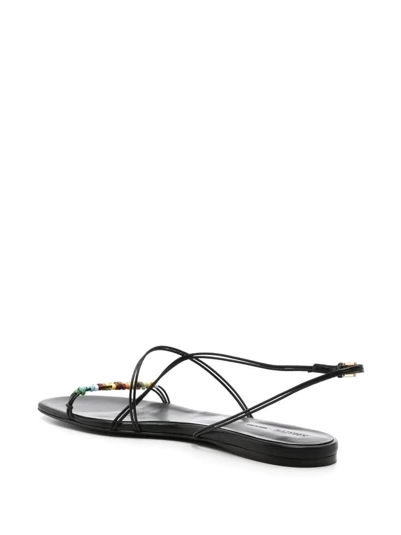 Black, buckle-fastening ankle strap, branded footbed, flat sole.
