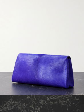 Crinkled polished calfskin clutch.