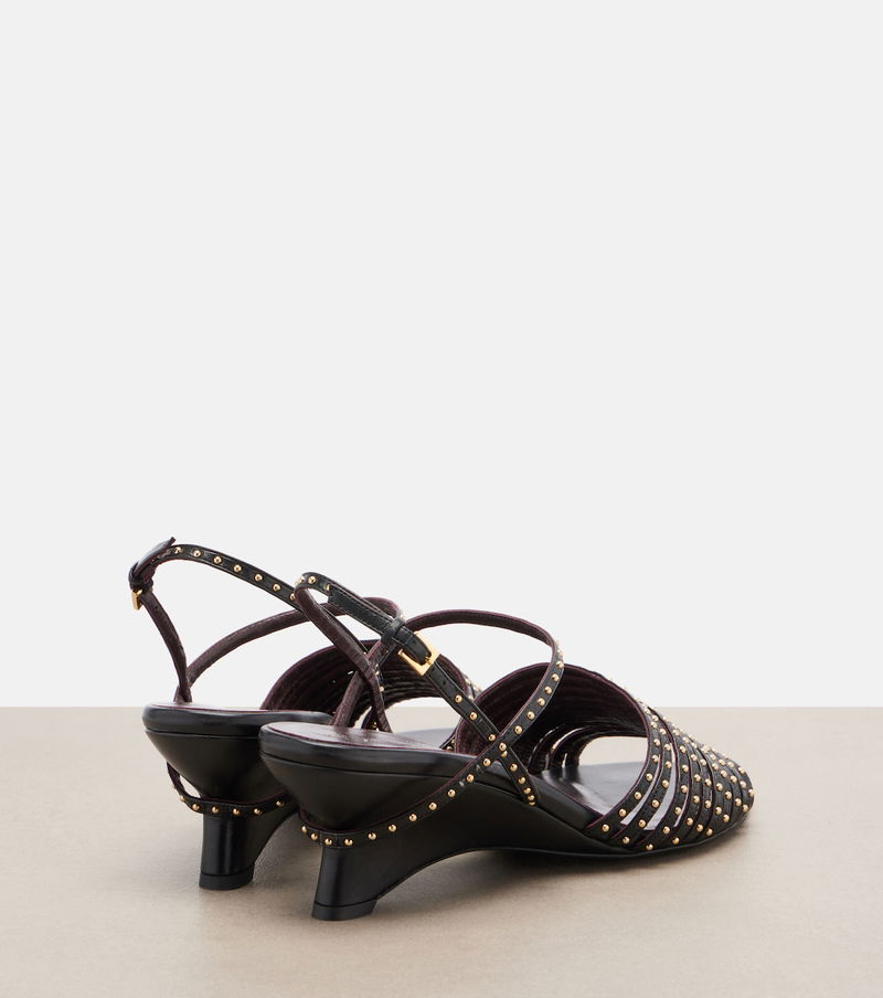 Khaite's minimalist designs exude modern sophistication and effortless elegance. The Drew wedge sandals are crafted from leather and boast studded detailing.