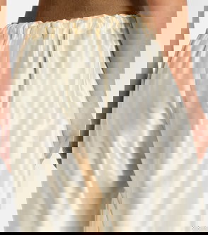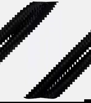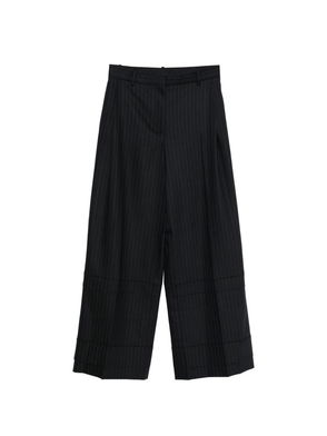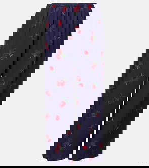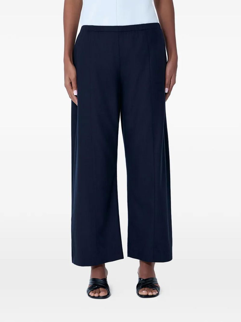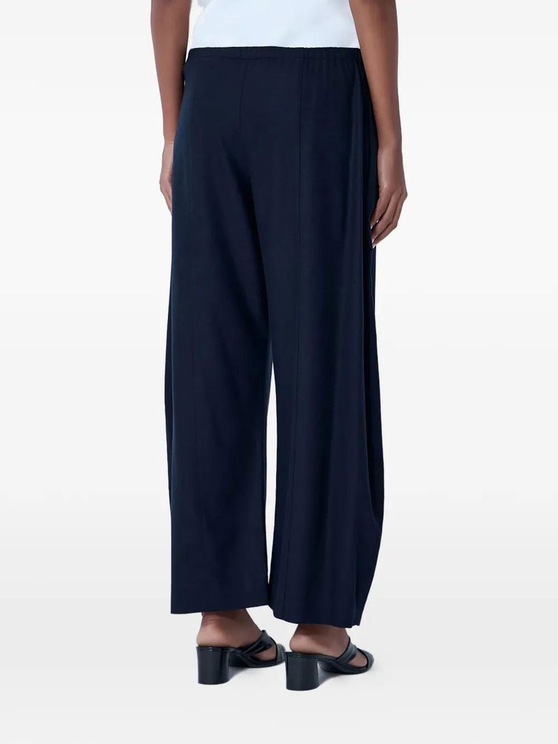Navy blue, elasticated waistband, wide-leg silhouette.