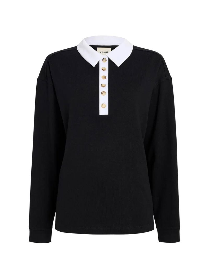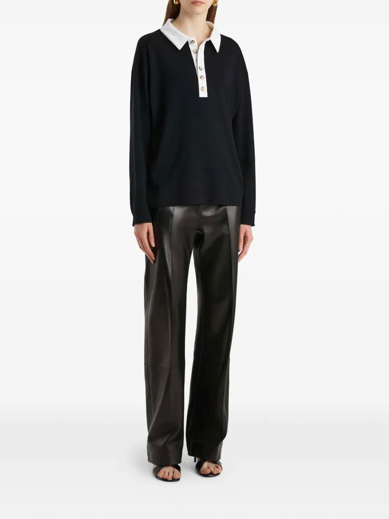 Black collared front button fastening long sleeves buttoned cuffs silk.