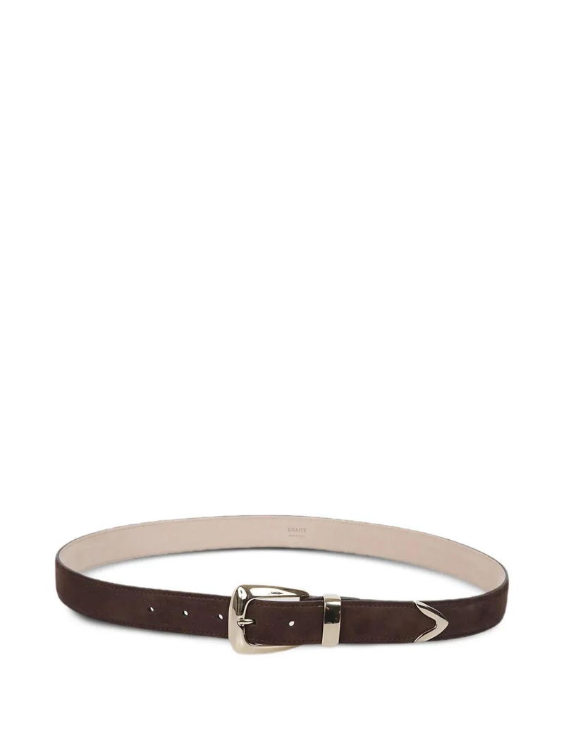 Brown, gold-tone buckle, calfskin.