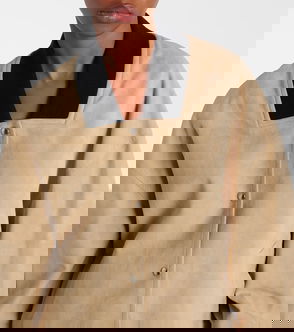 A reimagined bomber in buttery soft nappa lambskin. The relaxed, rounded silhouette is made in Italy with a stand collar fortified by a removable collar guard. Refined by welted side pockets and signature silver hardware at the two-way zipper and zippered cuffs. Tonal knit panels at elasticated hem. Lined in silky cupro twill.