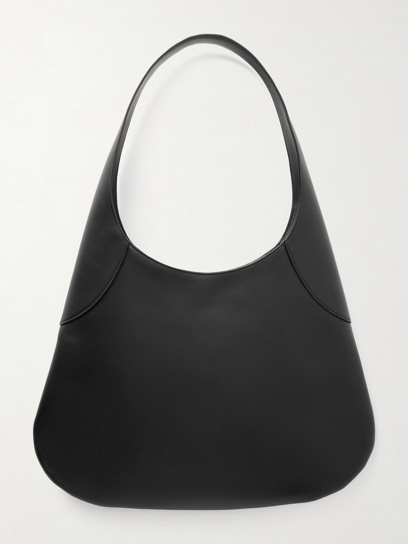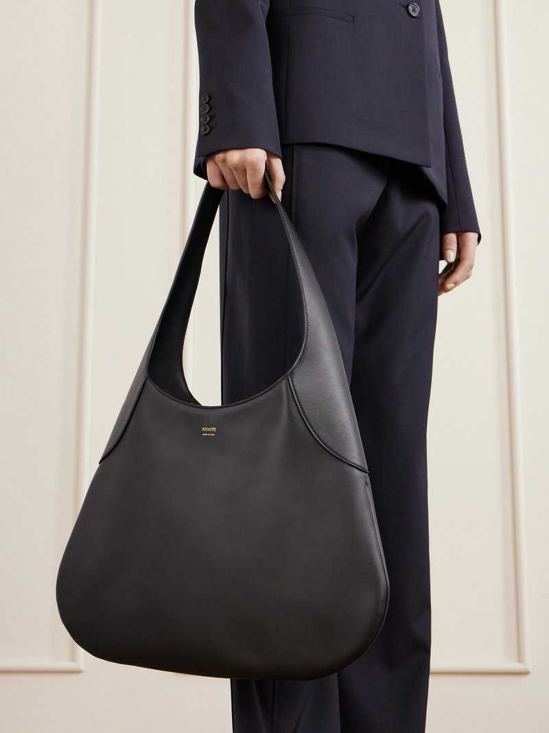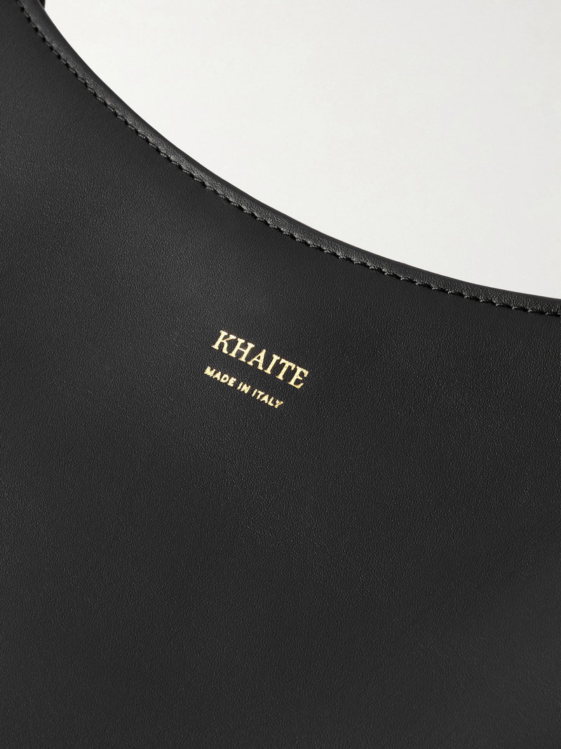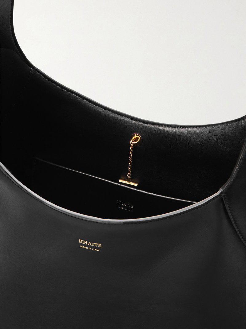 KHAITE's designs are often defined by clean lines and simple shapes. This large version of the 'Joan' bag encapsulates the brand's pared-back approach with its sweeping, structured shoulder strap and curved base. It's made from smooth black leather and has an open top secured by a petite gold-tone T-bar.