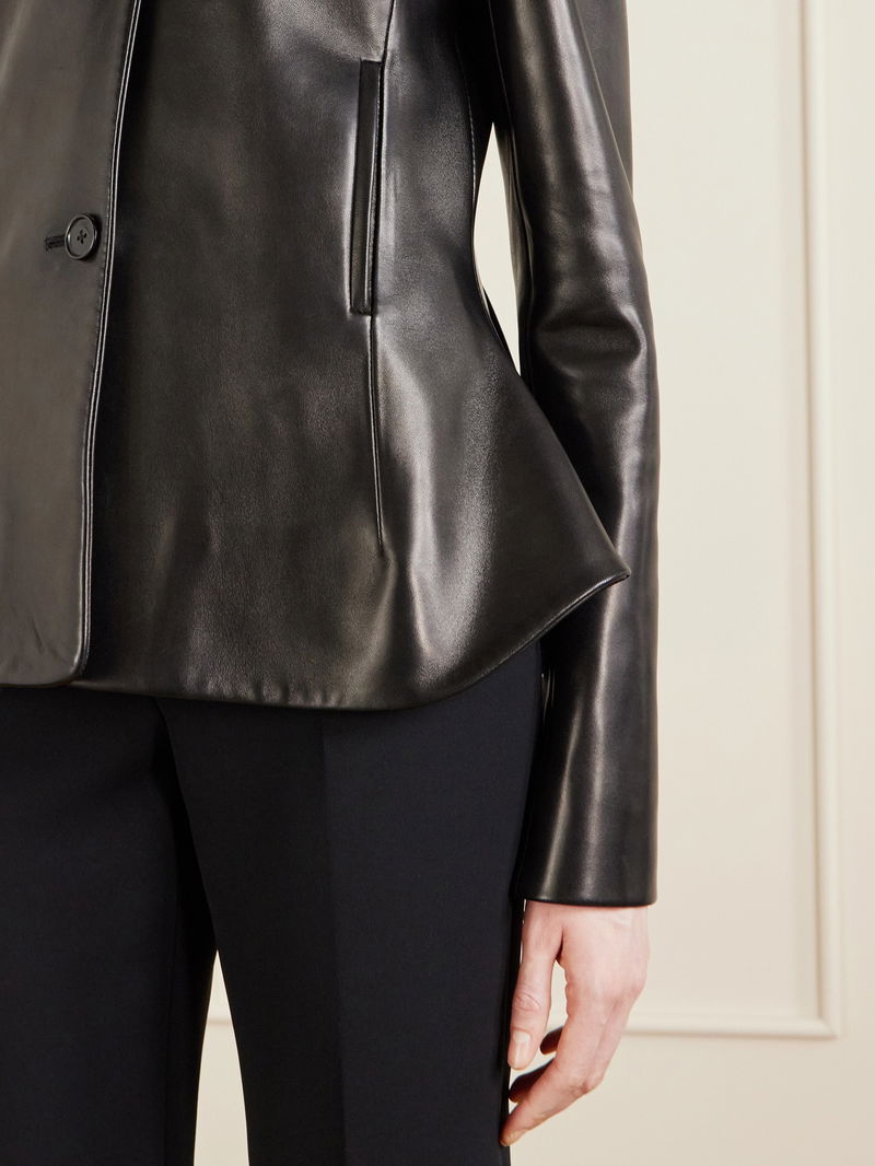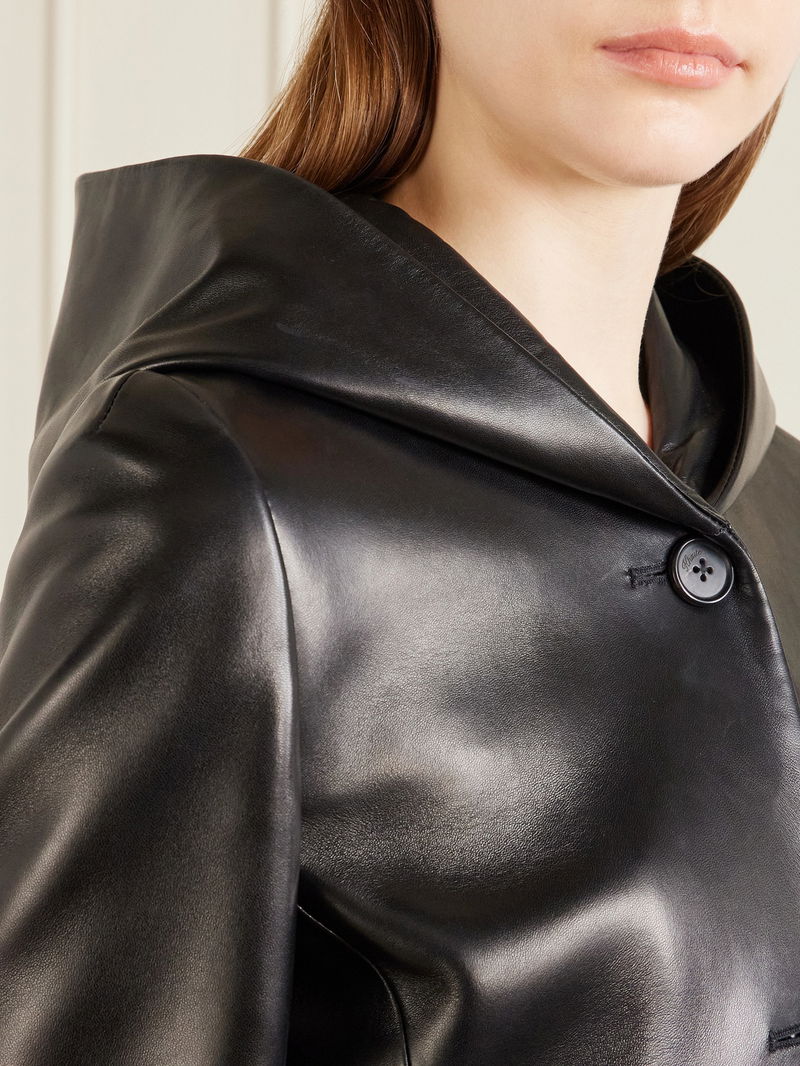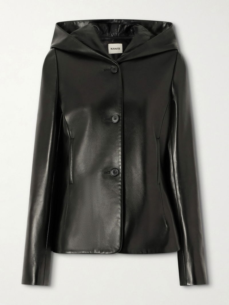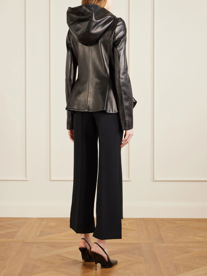 Made from supple leather to skim your figure, KHAITE's 'June' jacket is topped with a hood and falls to a ruffled peplum hem. Underscore the sleek, contemporary feel by pairing it with jeans.