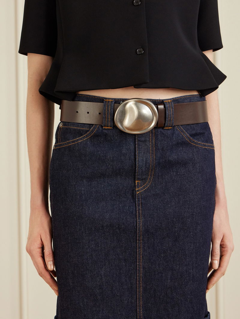 KHAITE's 'Keefe' belt was styled with several looks on the label's Spring '26 runway in New York. It's made from smooth leather in a medium-width profile and centered with an antiqued silver-tone buckle in an organic oval shape. Wear yours low on the hips with a cropped or tucked-in top.