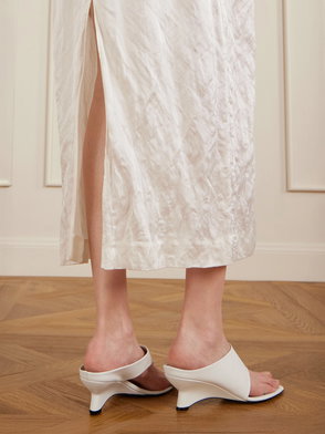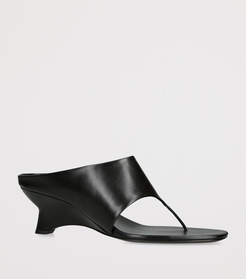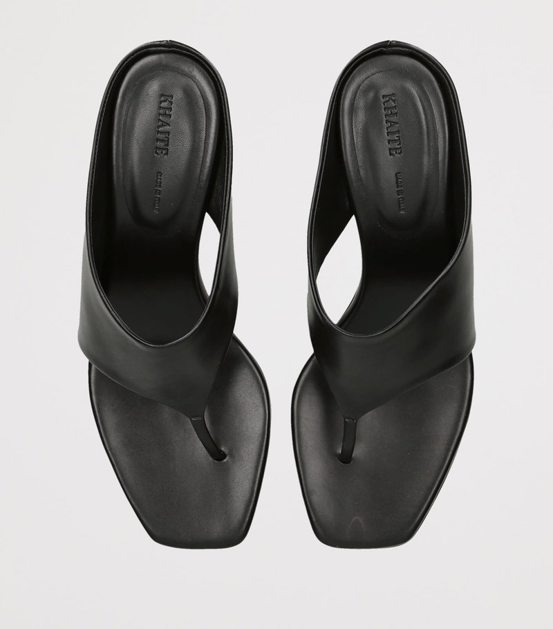 The Marlow heeled mules from khaite exemplify the label’s expressive approach to design, reworking the classic toe post sandal through a distinctly metropolitan lens. Set atop sculptural chunky heels, the pair is defined by clean, fluid lines and finished in supple leather, lending a sense of refined polish and simultaneous architectural appeal.