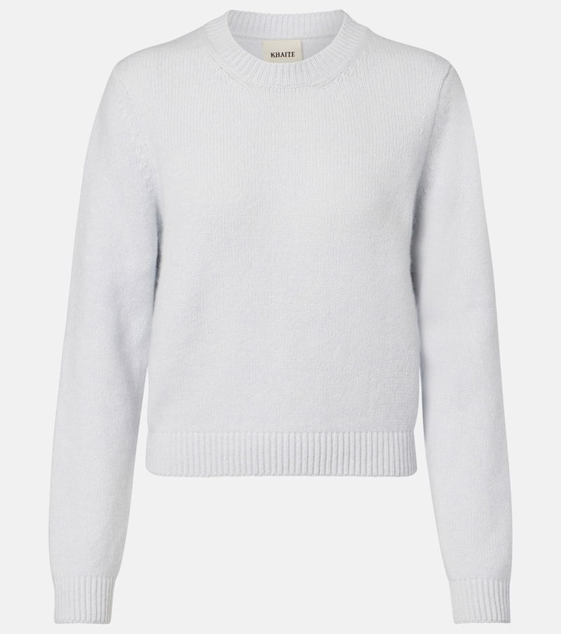 Made in Italy from light blue cashmere, the Leta sweater is a classic crewneck style with ribbed-knit trims.