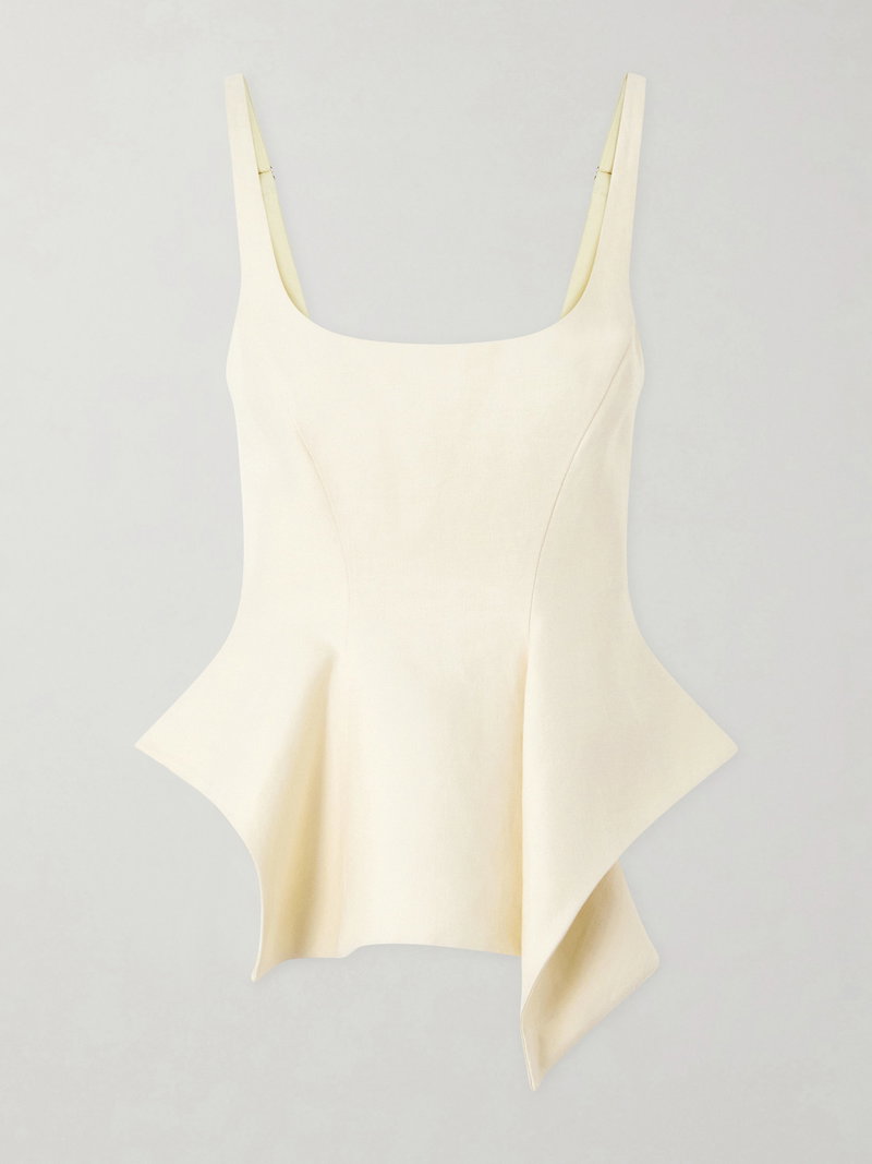 KHAITE's 'Loa' top brings sculptural precision to warm-weather tailoring. It's cut from linen to skim your torso before flaring out into a ruffled peplum hem. Style yours with wide-leg trousers or a sleek column skirt to balance the profile.