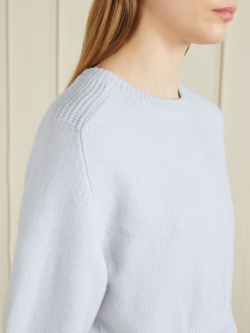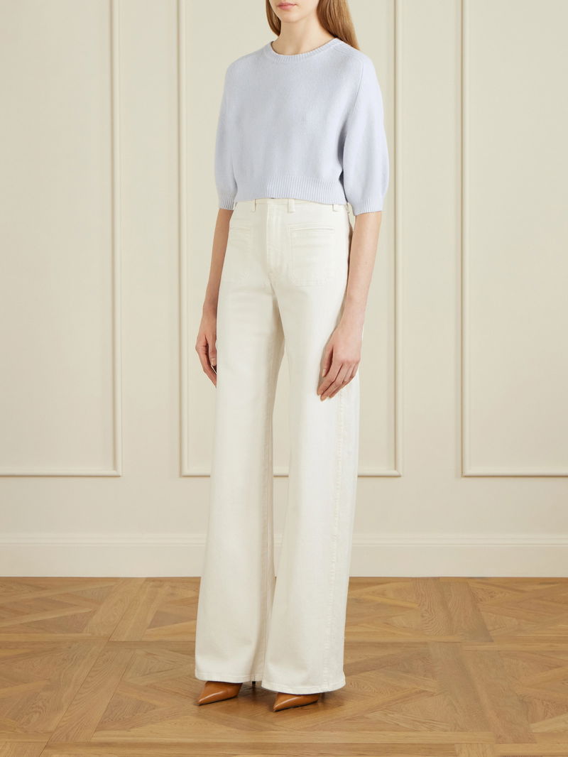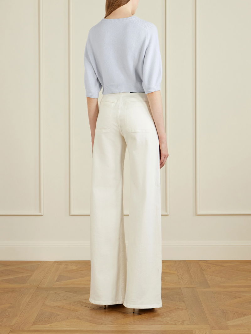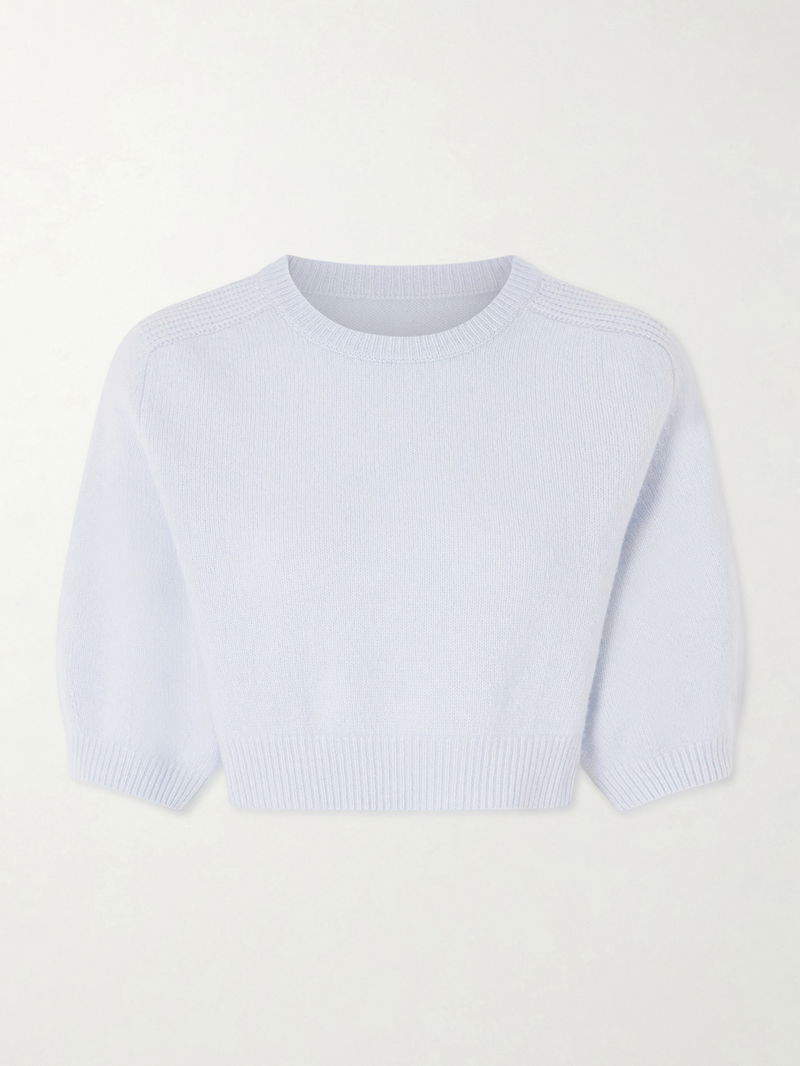 KHAITE's 'Lorelai' sweater redefines classic knitwear, cropped, with gentle voluminous sleeves that add subtle drama. It's made from sumptuous wool and cashmere-blend. Wear yours with a high-rise pencil skirt.