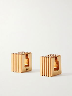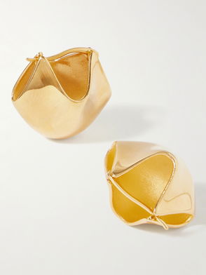 Khaite's minimalist designs exude modern sophistication and effortless elegance. The Lotus earrings are designed with a round silhouette and flaunt an 18kt gold-plated finish with a logo-engraved detail.