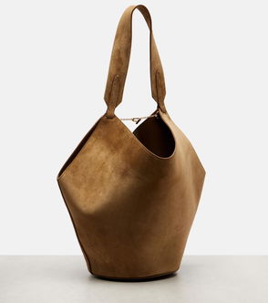 The unstructured, sculptural shape of KHAITE's 'Lotus' tote is inspired by the fluidity of a scarf. Sized to fit your phone, wallet, water bottle and small compact, this spacious style has been made in Italy from butter-soft suede and left unlined for lightness. It has a round base and slim top handle that fits comfortably over the shoulder.