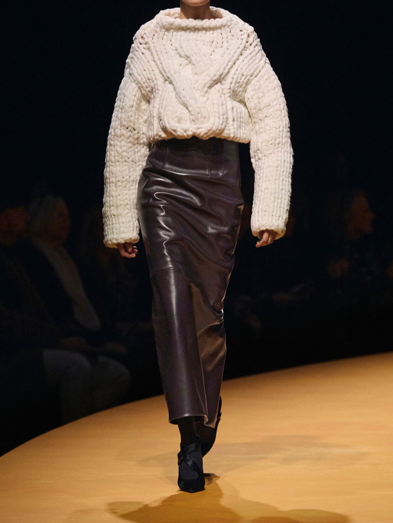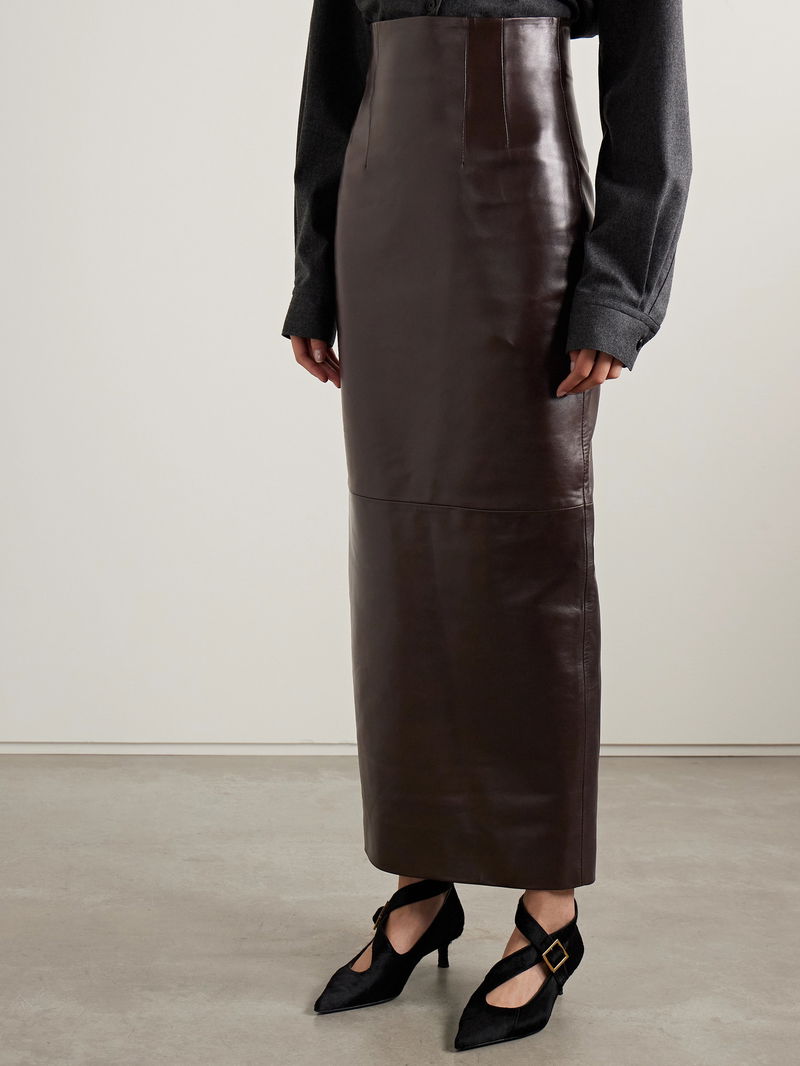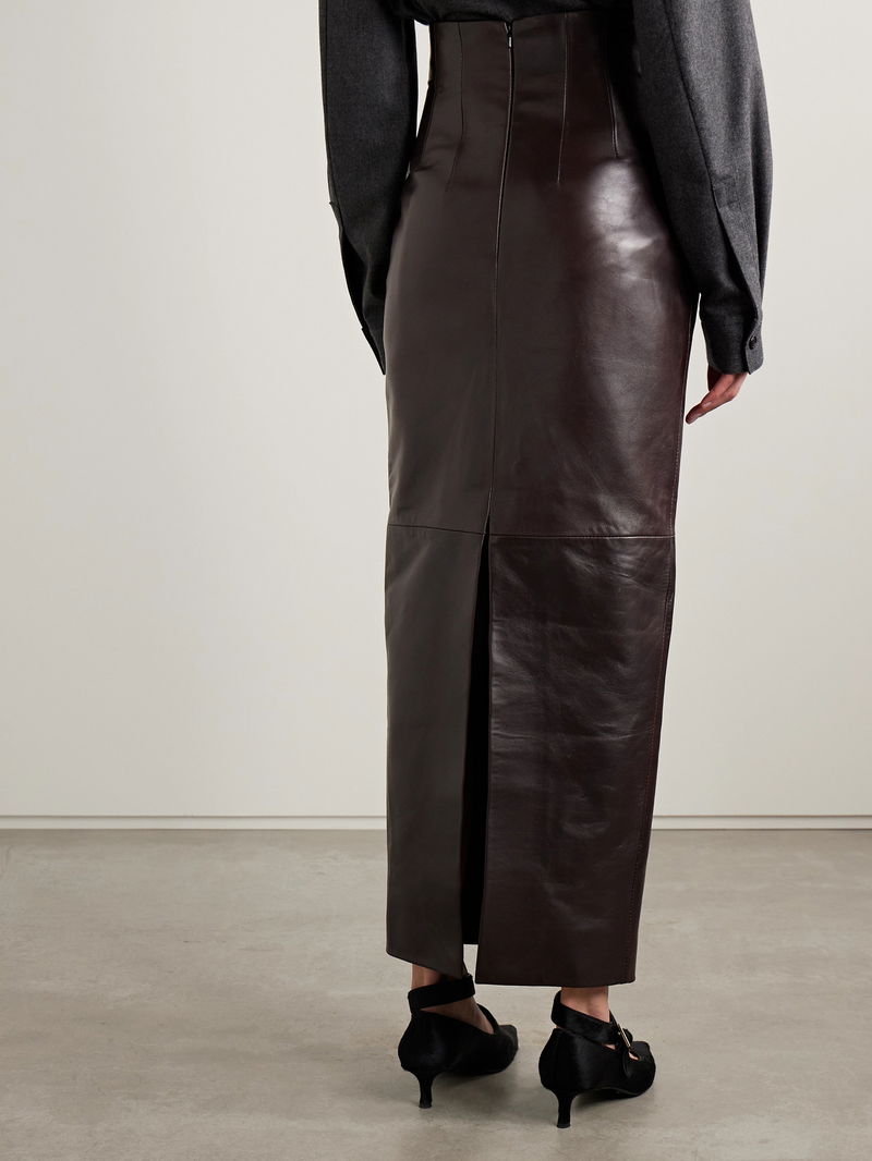 KHAITE's 'Loxley' skirt feels so refined thanks to its minimal column silhouette. As seen on the runways, this leather version has a darted waist and falls to an ankle-grazing hem that's split along the back. The smoothing crepe de chine lining stops it from clinging.