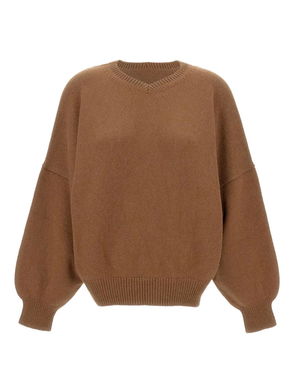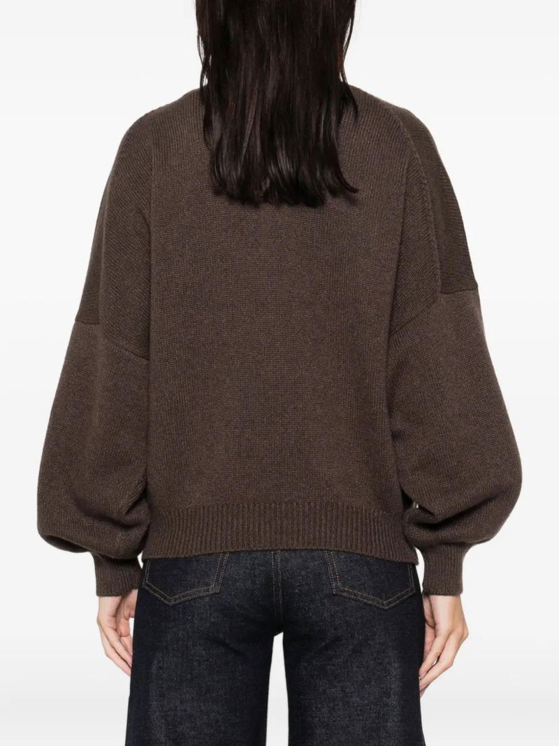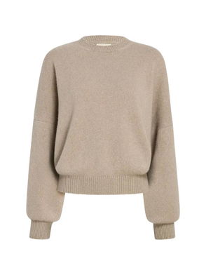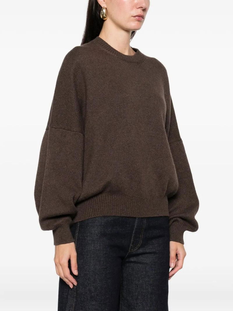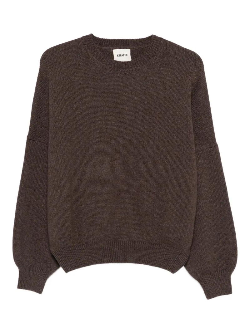 Coffee, round neck, long sleeves, ribbed hem and cuffs.