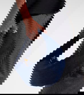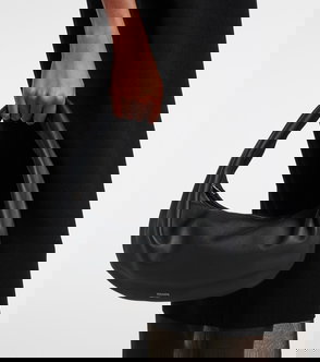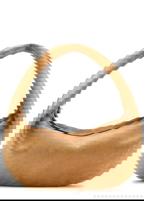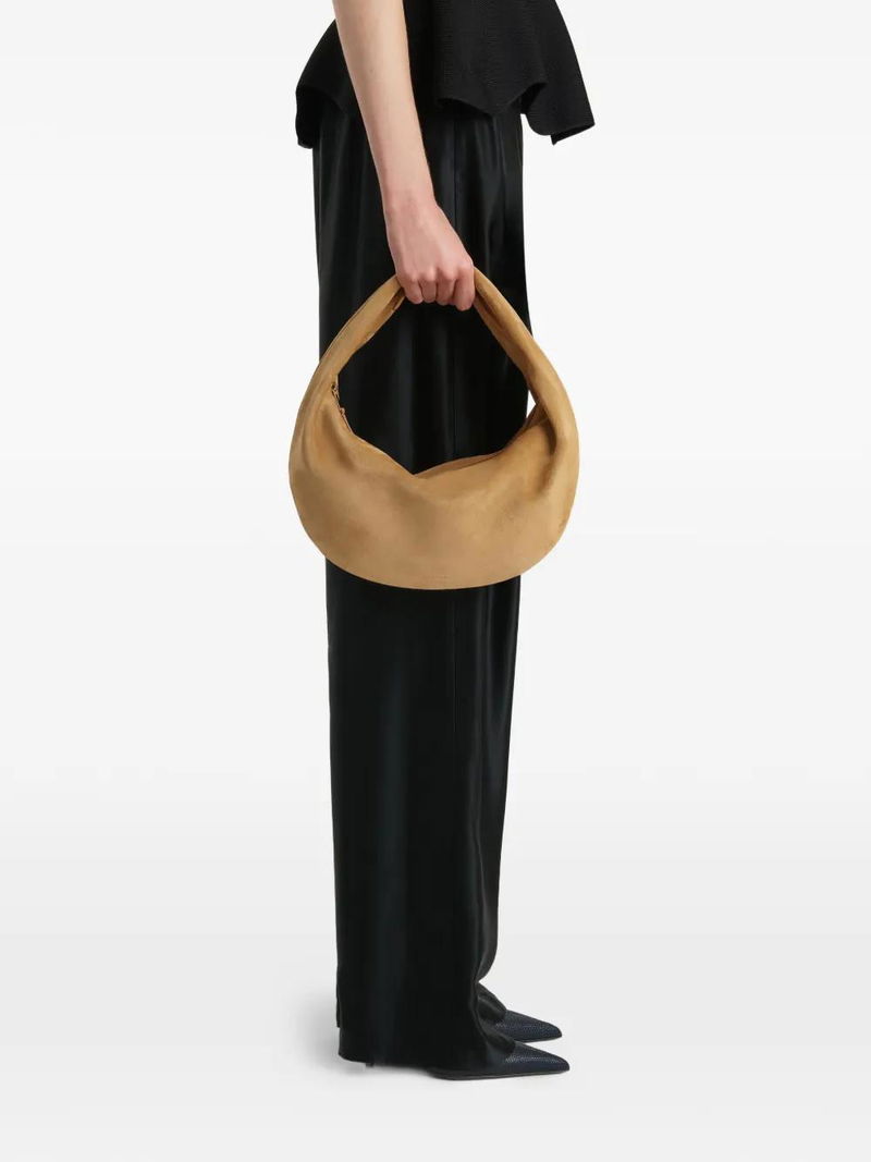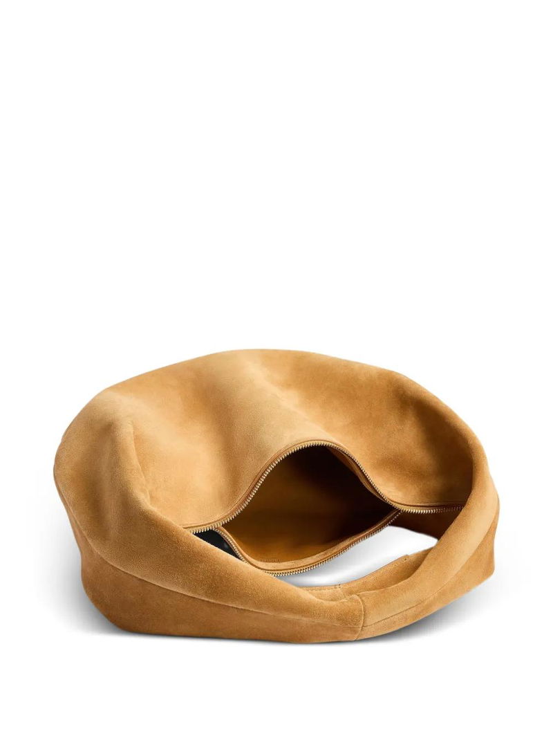 A slouchy yet refined zip-top hobo bag crafted in Italy of silky calfskin suede selected for its rich coloration and enduring softness. Integrated strap to wear over the shoulder or carry by hand. Signature hardware at zipper pull. Lined in soft nappa leather.