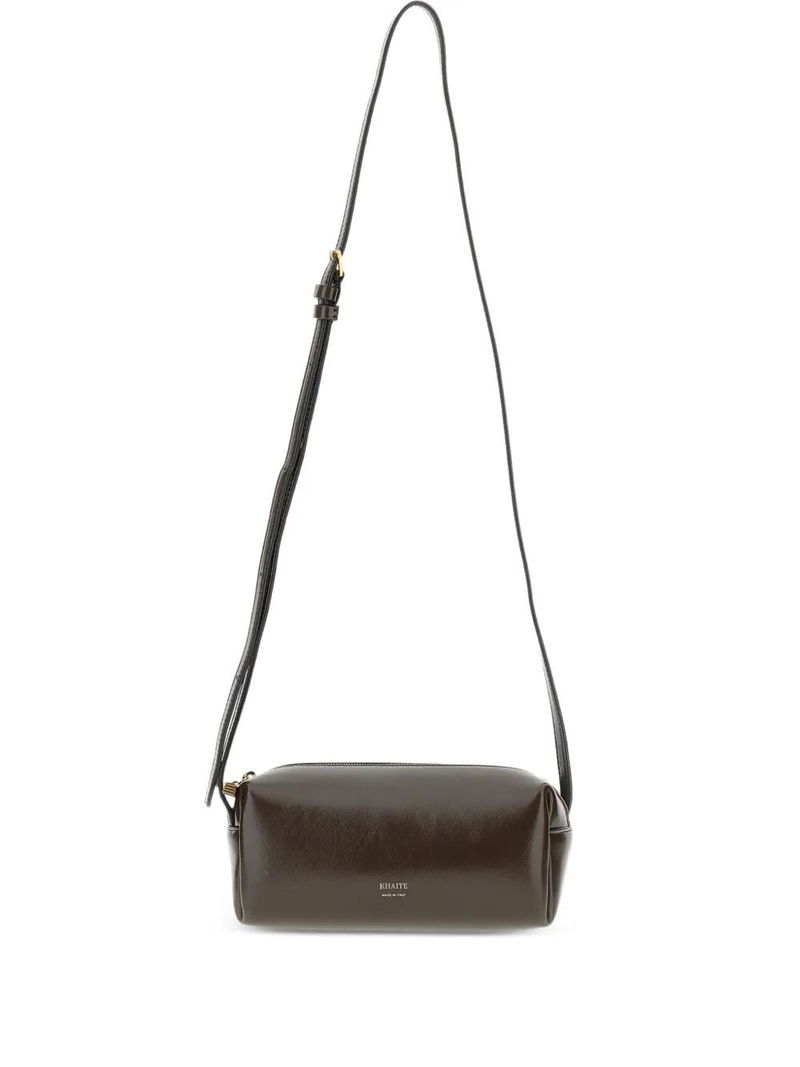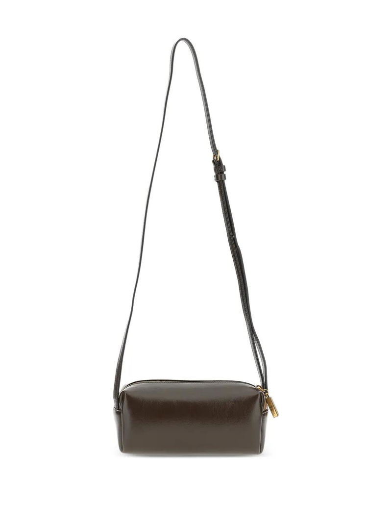 Brown adjustable shoulder strap zip closure gold-tone hardware.