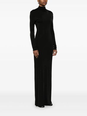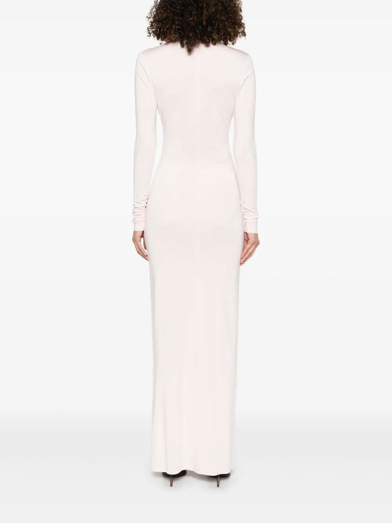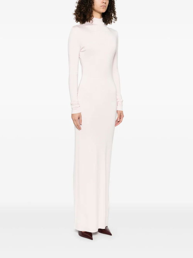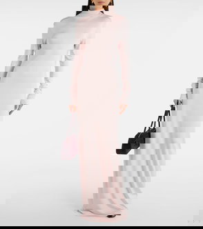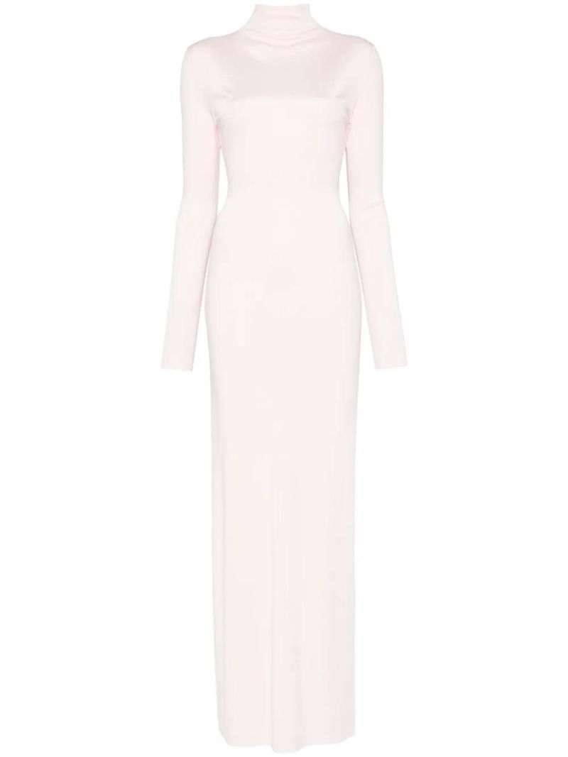 Rose pink concealed rear zip fastening mock neck long sleeves.