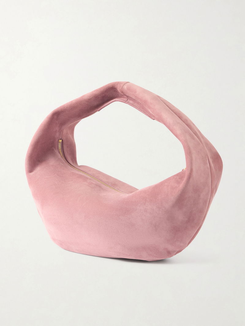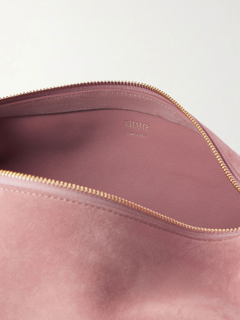KHAITE's 'Olivia' tote is designed in a distinctive circular silhouette with a top zip that extends up the handle. Made from smooth pink suede in an unstructured shape, it loops easily over your shoulder or the crook of your arm. It's perfectly sized to store your phone, cardholder and keys.