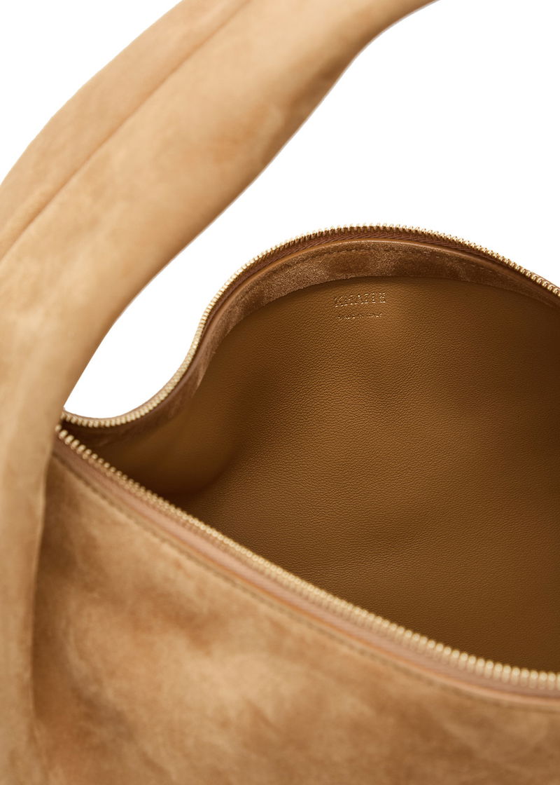 KHAITE suede top handle bag.