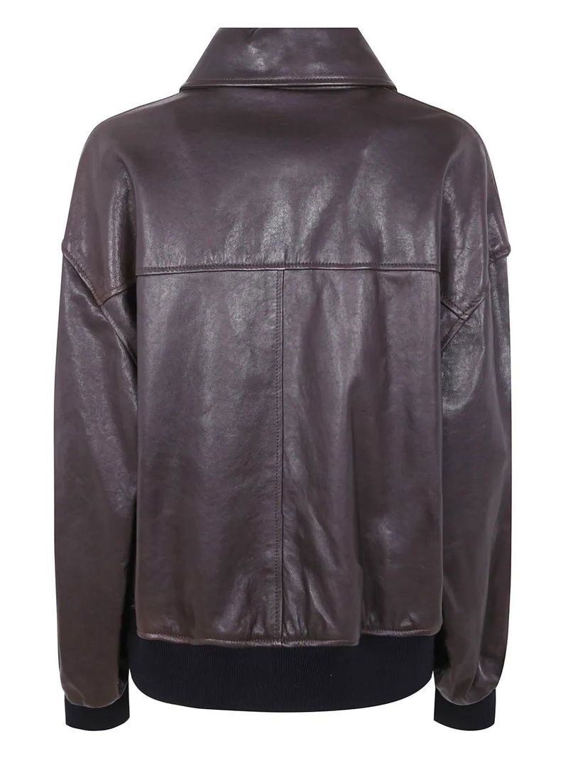Coffee brown, front press-stud and zip fastening, slip pockets to the sides, pointed flat collar, drop shoulder.