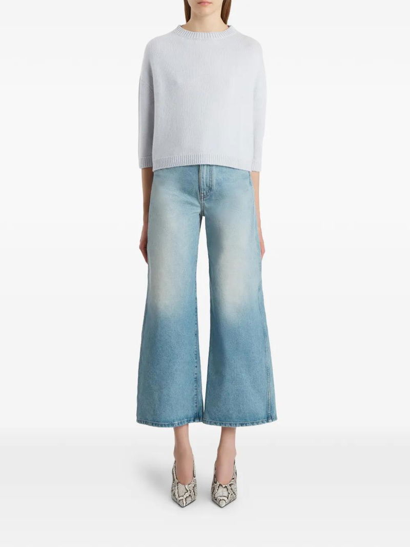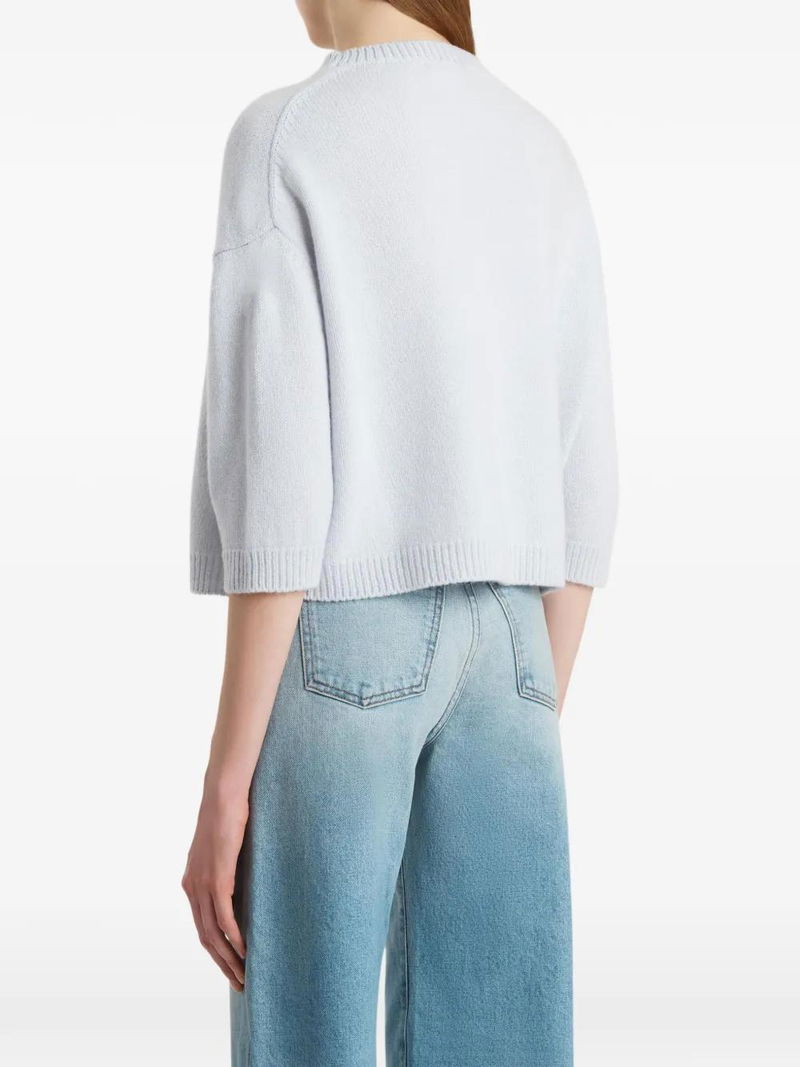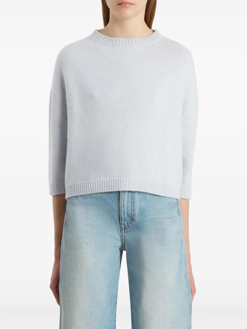 A softly shaped pullover designed to highlight the softness and structure of luscious cashmere. Dropped shoulder seams enhance the unique, deliberately rounded silhouette. Refined by ribbing at wide crewneck, elbow-length sleeves, and hem.