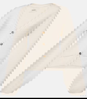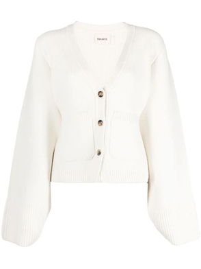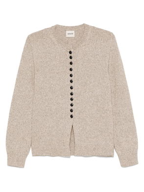 Khaite's 'Scarlet' cardigan is crafted from Mongolian cashmere, specifically chosen for its exceptional softness. It comes in a versatile 'Barley' hue and is designed for a relaxed fit with knuckle-grazing sleeves and cozy ribbed trims. Wear yours with the top button undone, showing off the matching 'Eda' bra.
