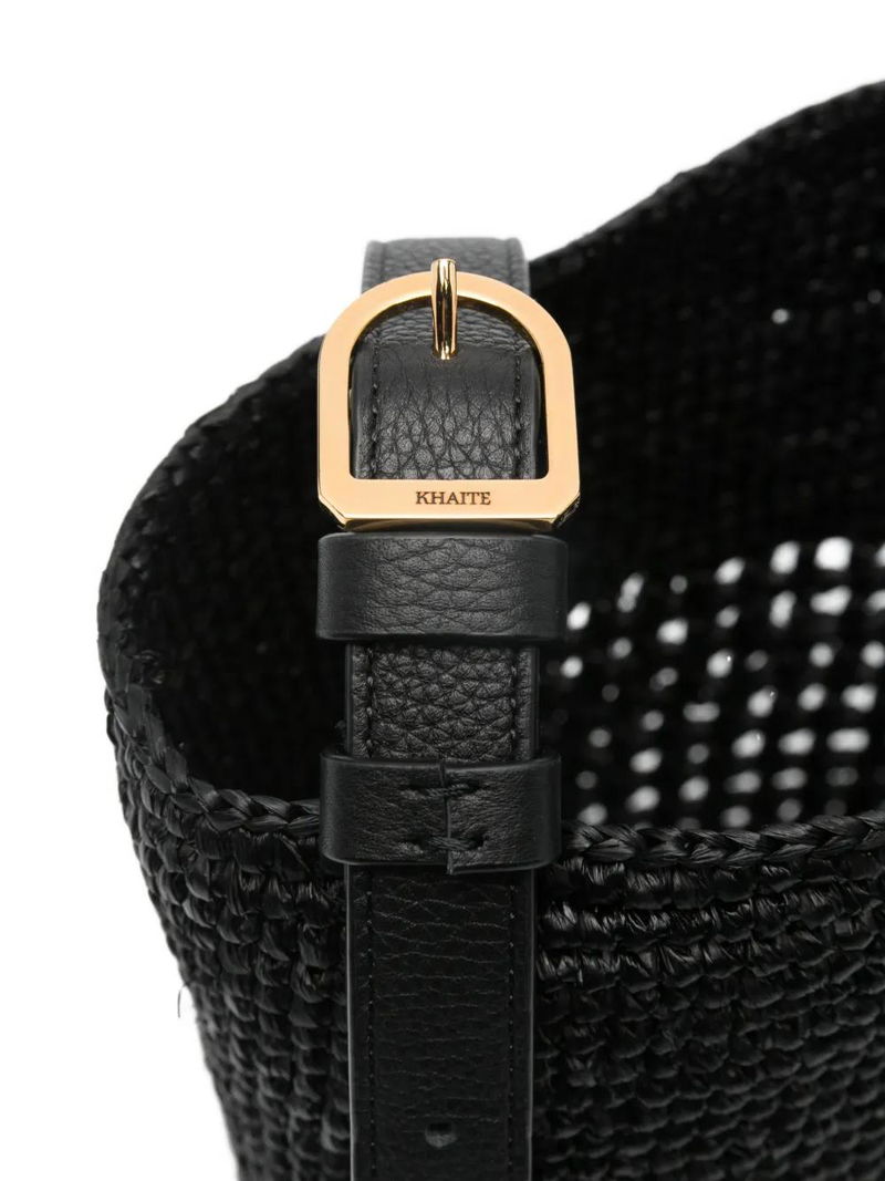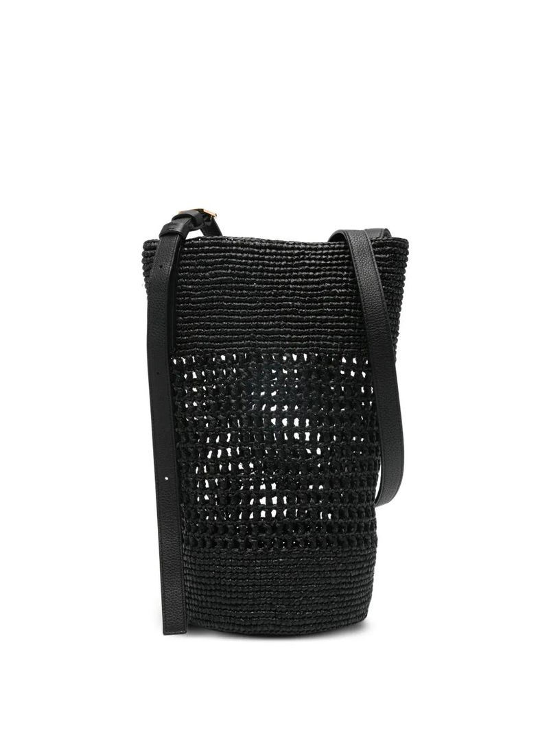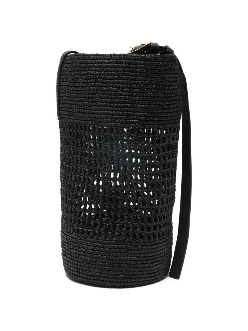 Black, woven design, adjustable shoulder strap, gold-tone hardware.