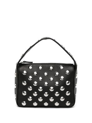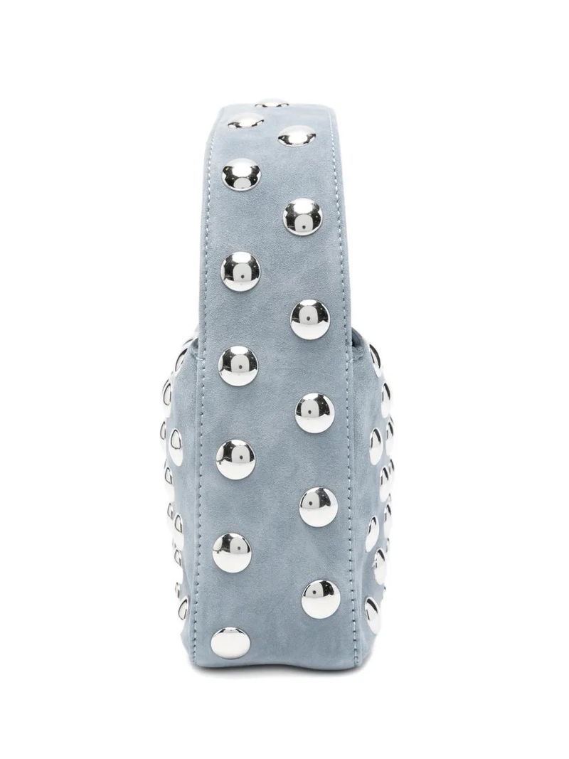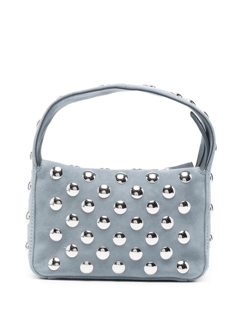 Blue studded top handle zip fastening internal slip pocket.