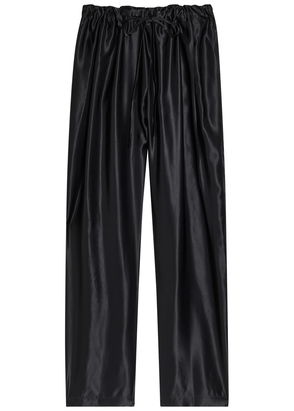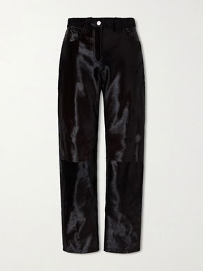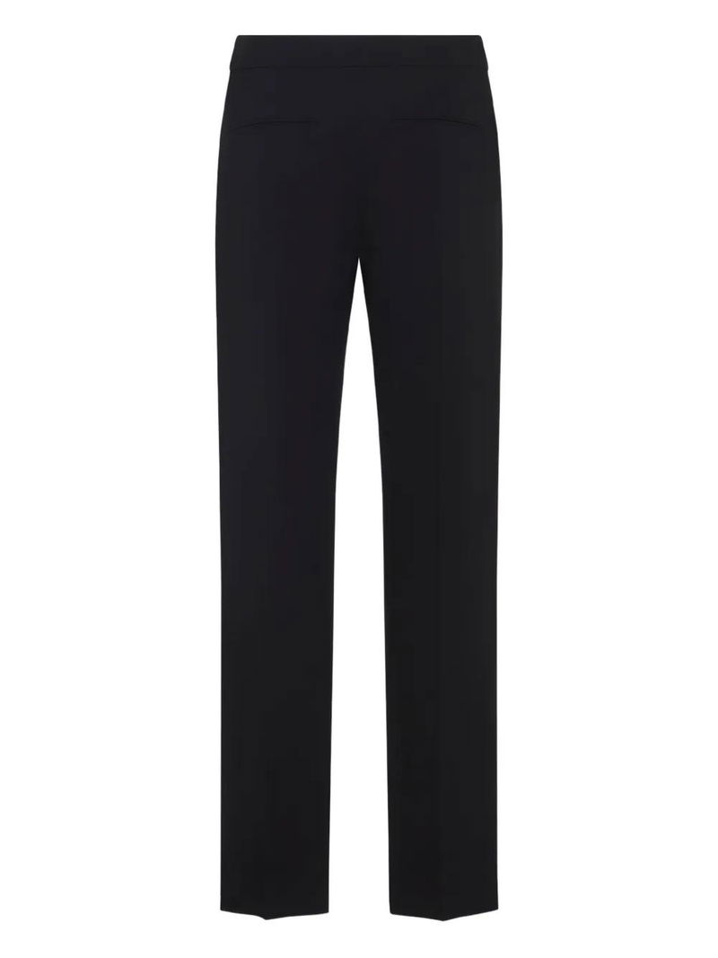 Black high waist straight leg flat front.