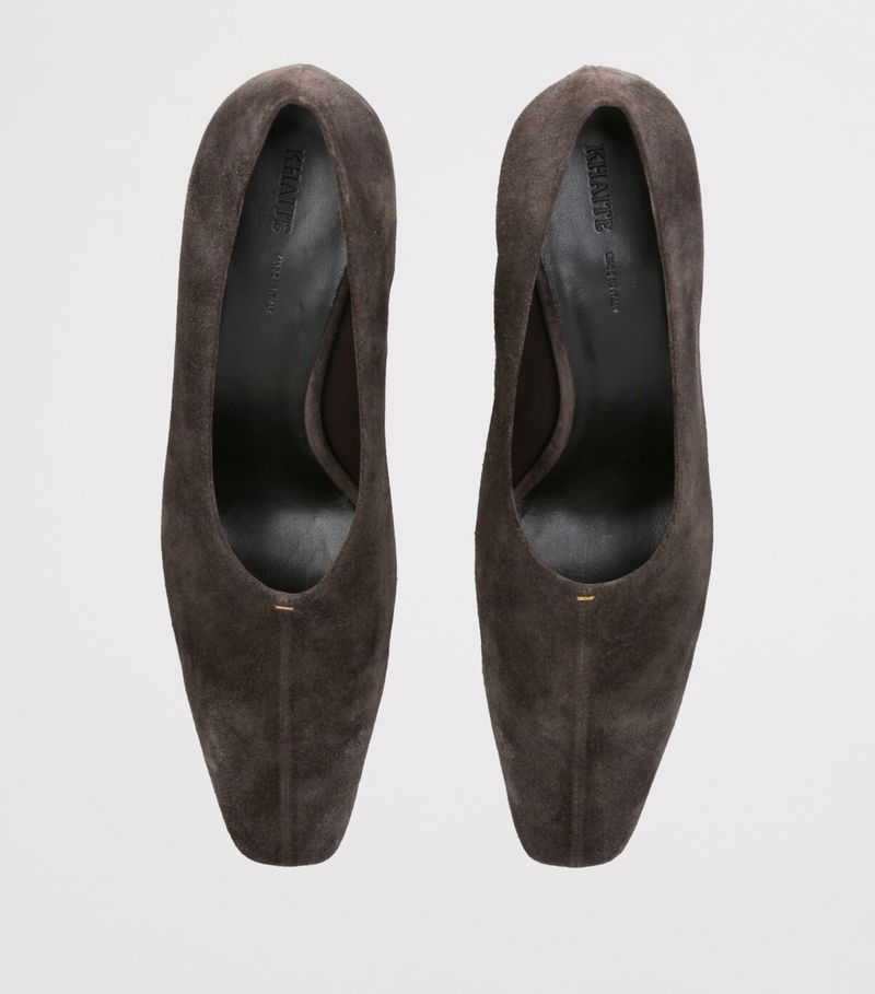 Looking at the versatility of loafers as both a smart and refined option for day-to-night edits, khaite updates the slip-on inspired Celia pumps. Crafted in Italy from fuzzy suede, the pair's minimal outlook allows the eye to appreciate its strong architectural appeal, both between the flattened kitten heel and the square toe.