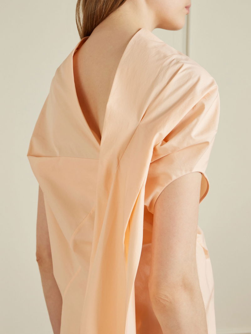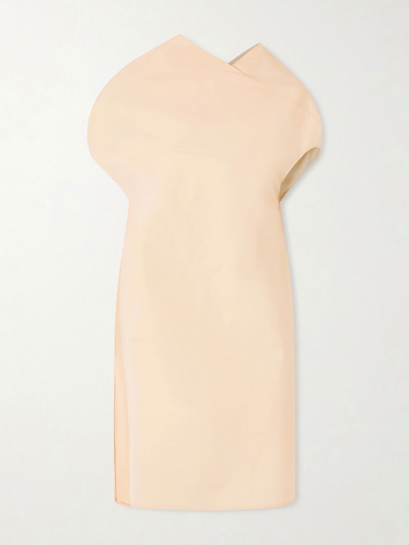 KHAITE's 'Tatia' dress exudes contemporary elegance with its clean lines and interesting design twists. It's cut from crisp cotton-poplin and has a high neckline that looks great with sculptural but dainty earrings.