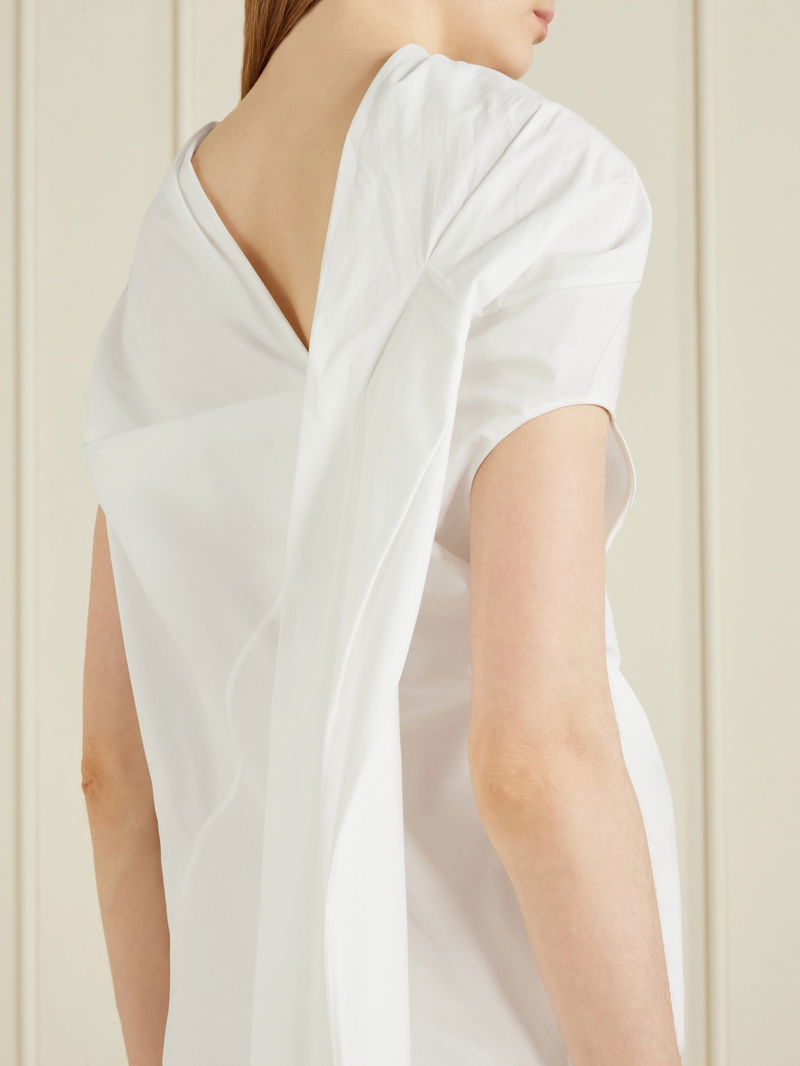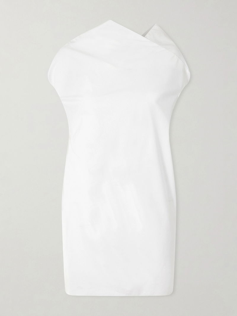 KHAITE's 'Tatia' dress exudes contemporary elegance with its clean lines and interesting design twists. It's cut from crisp cotton-poplin and has a high neckline that looks great with sculptural but dainty earrings.