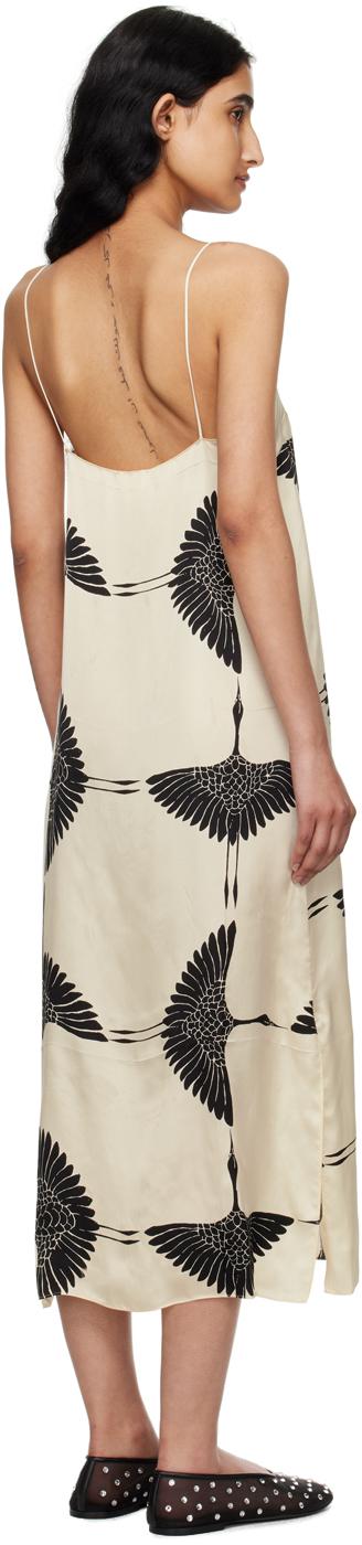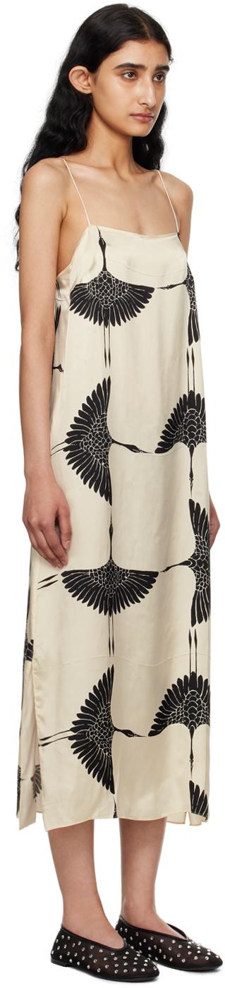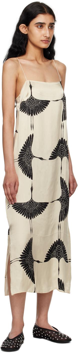 Cupro satin dress. Graphic pattern and pleats throughout. · Straight neck· Fixed spaghetti straps· Concealed zip closure at side· Vented side seams·