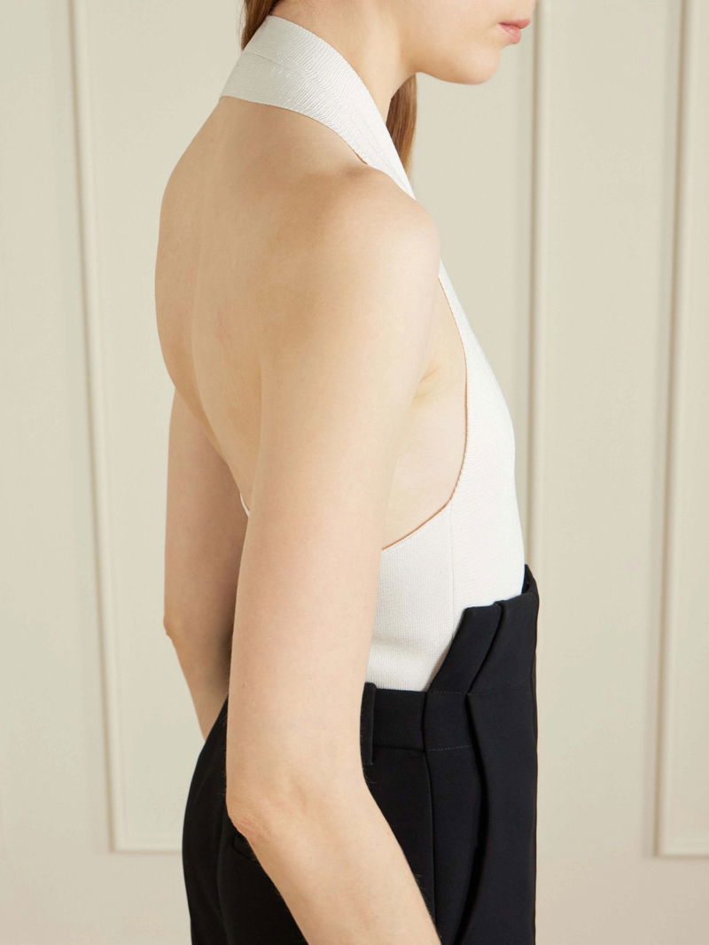 Stylish wardrobe staples like this 'Toto' bodysuit are a KHAITE specialty - the brand knows how to design them just right so they're distinct yet timeless. It's made from smooth stretch-knit for a figure-hugging fit and has a wide halterneck strap.