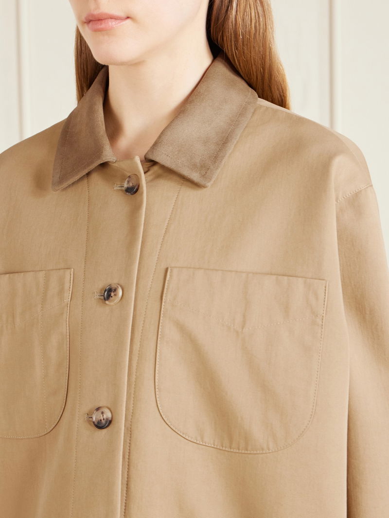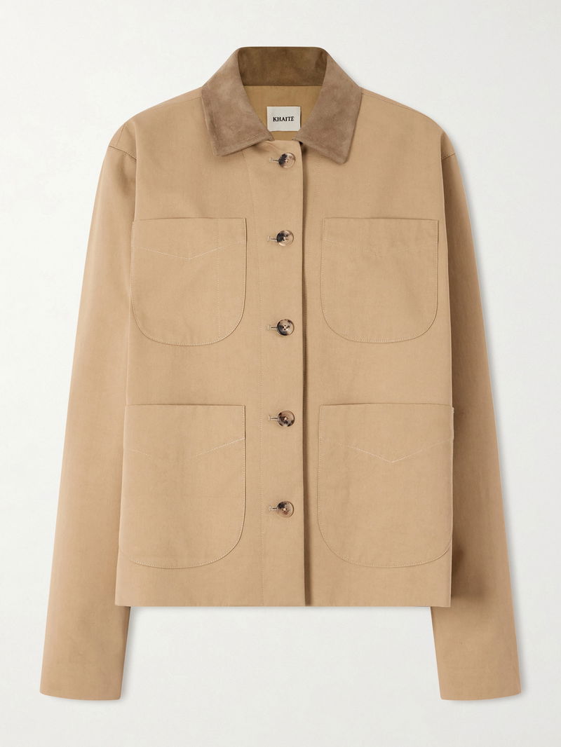KHAITE's 'Wyatt' jacket offers a refined take on traditional workwear. Made from cotton-gabardine, it's trimmed with suede at the collar and has deep patch pockets with tonal topstitching. Match your sunglasses to the tortoiseshell-effect buttons.