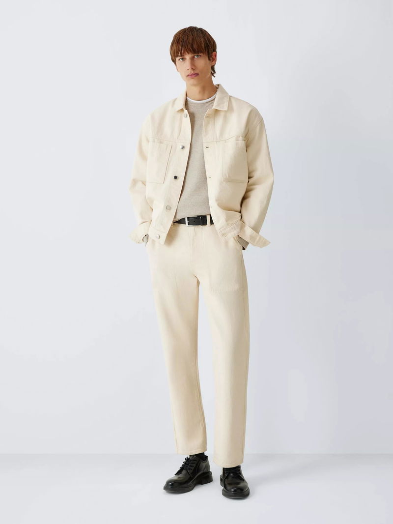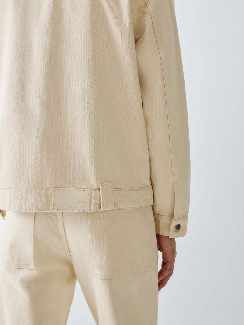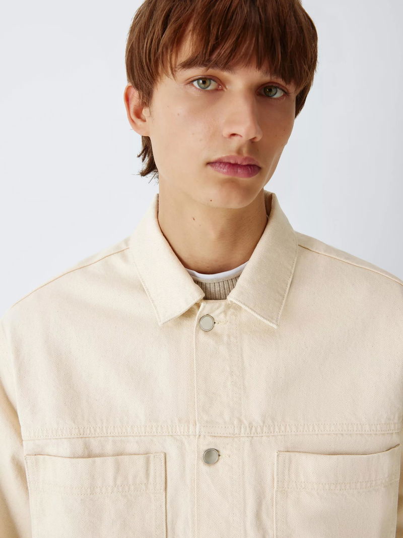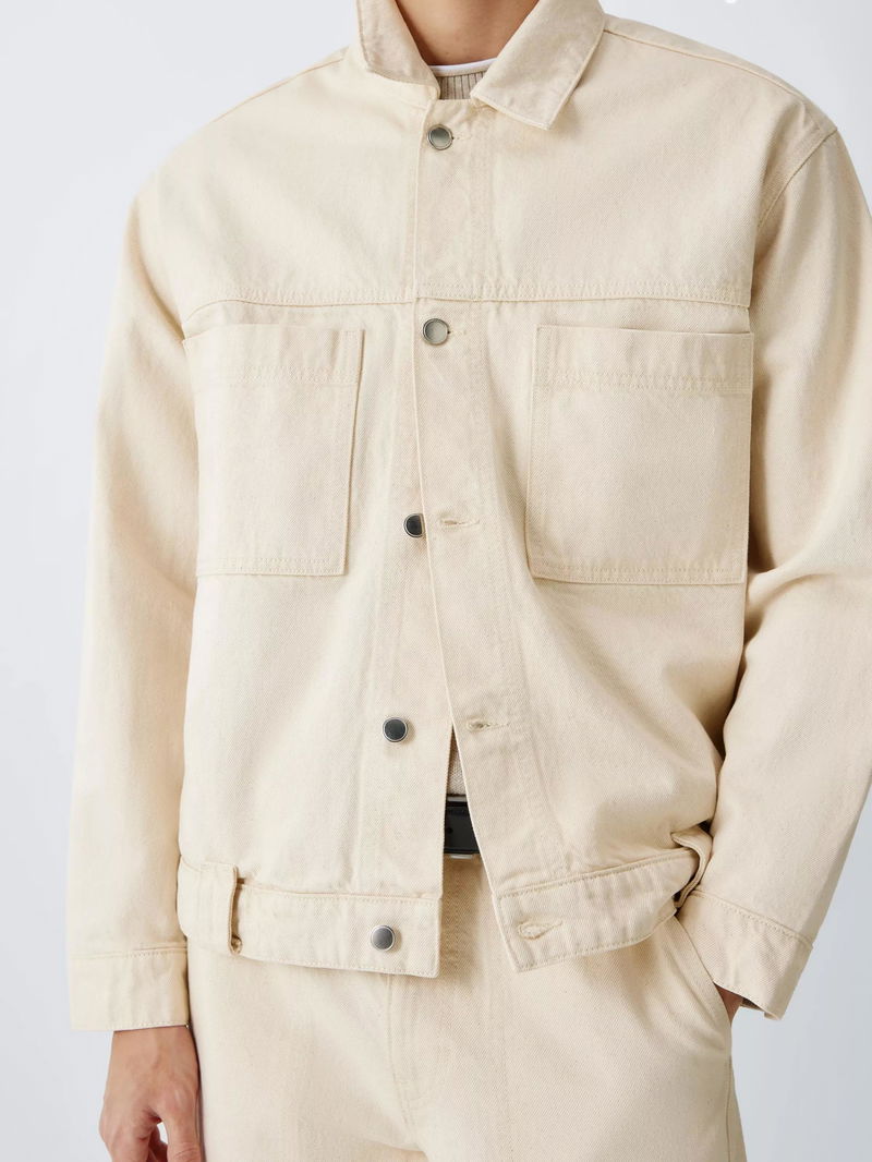 The relaxed, boxy silhouette of this denim jacket offers a modern take on a utility classic, providing a contemporary drape that layers effortlessly over seasonal knits. Featuring distinctive oversized patch pockets and a pointed collar, it's made from 100% cotton, with the mid-weight denim delivering exceptional breathability and the structural integrity of high-quality natural fibres.