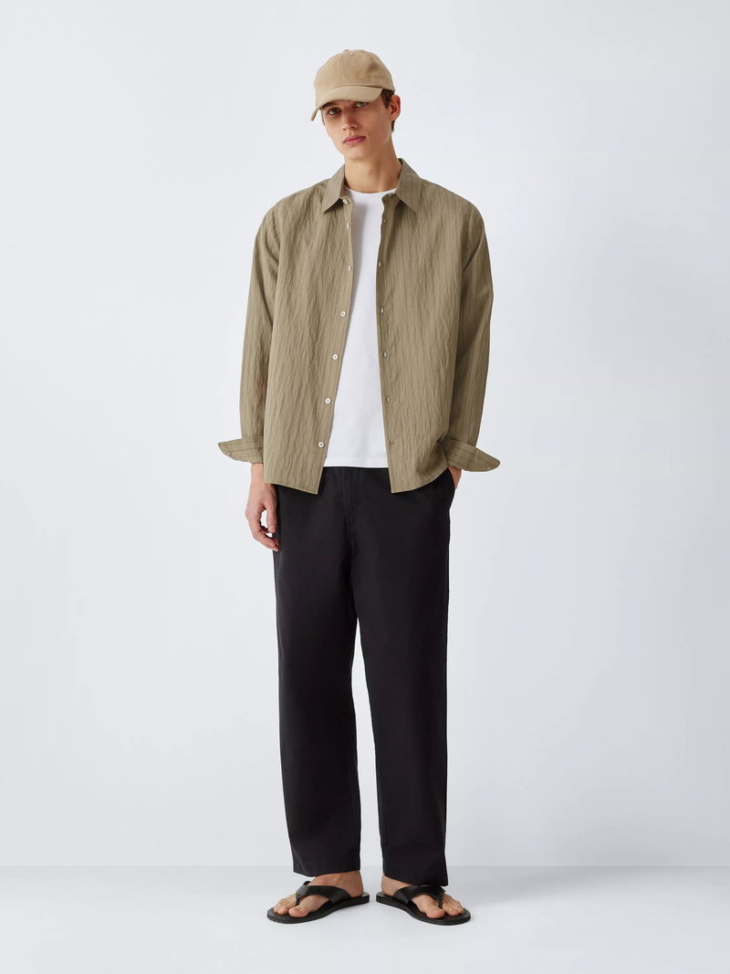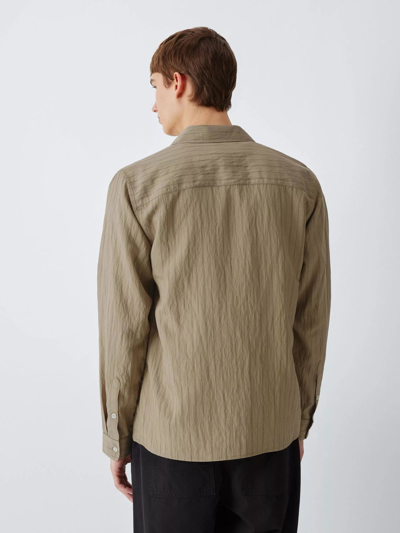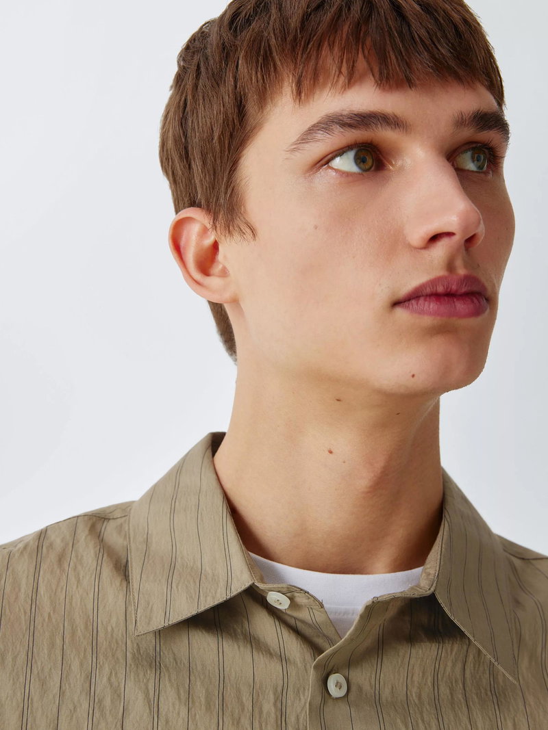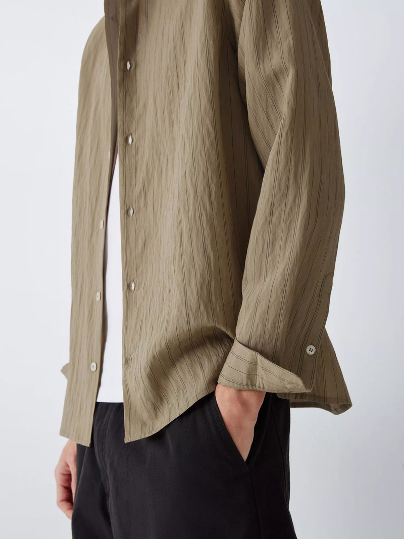 A fluid silhouette, this pinstripe shirt has a clean look that brings a sharp edge to everyday dressing. Cut with a crisp point collar, the design balances a relaxed drape with a confident, polished finish. The innovative modal-rich blend is chosen for its soft, smooth handle, breathability and natural movement. Made for the modern wardrobe, the inclusion of technical fibres ensures the garment remains resilient and crease-resistant, holding its shape through a full day of wear, from the office to afterwards.