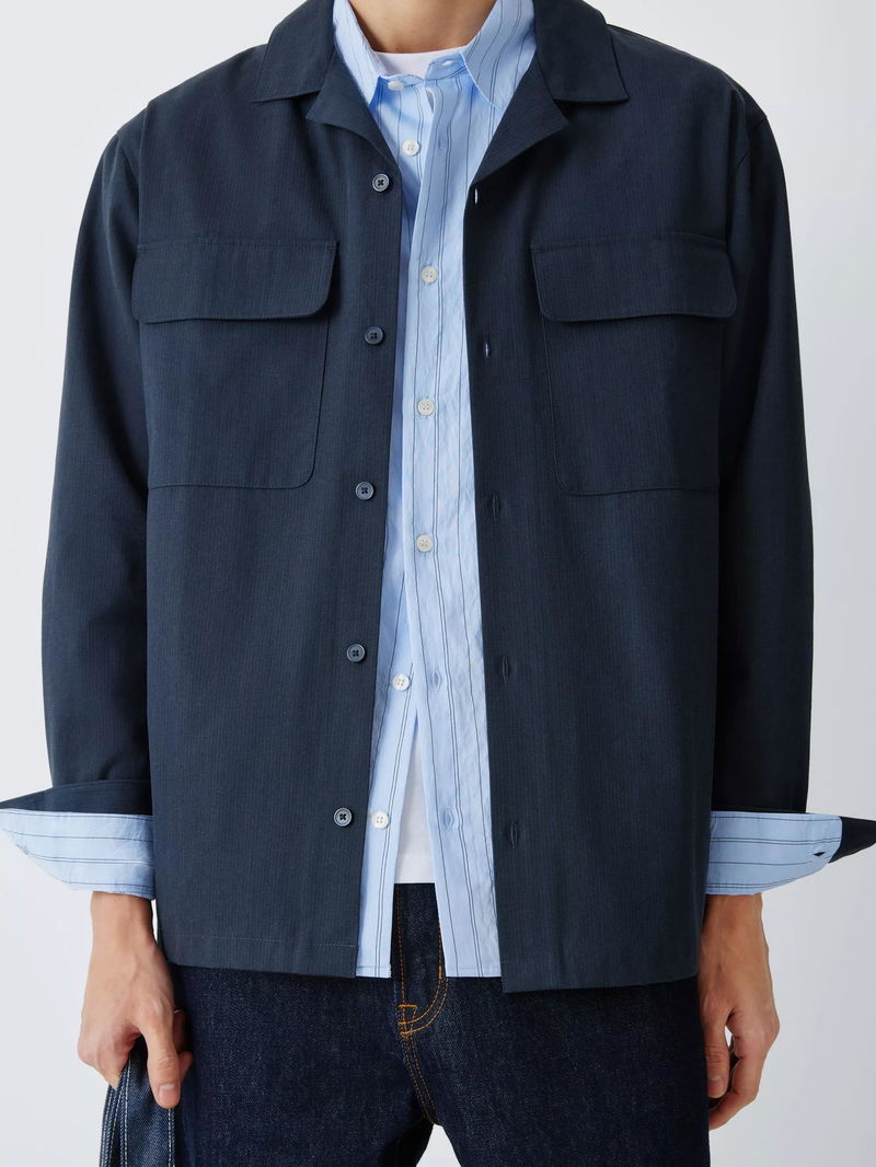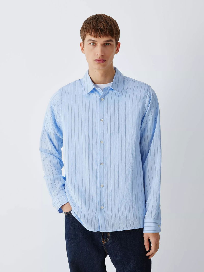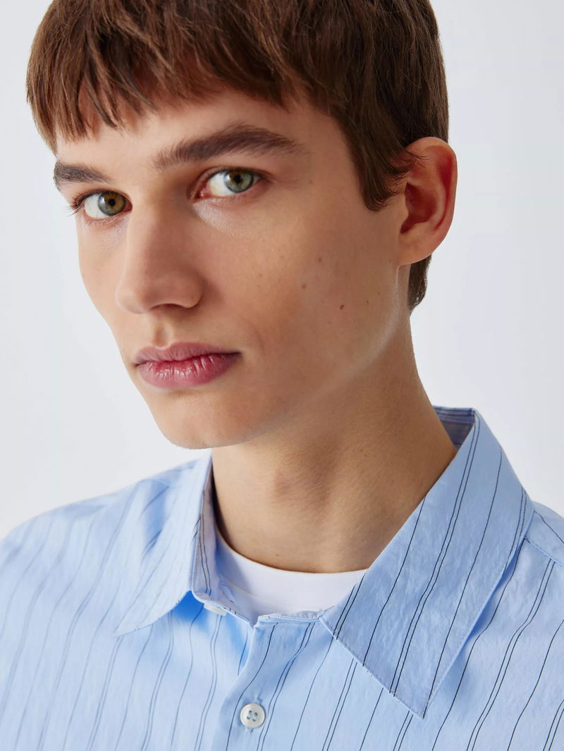 A fluid silhouette, this pinstripe shirt has a clean look that brings a sharp edge to everyday dressing. Cut with a crisp point collar, the design balances a relaxed drape with a confident, polished finish. The innovative modal-rich blend is chosen for its soft, smooth handle, breathability and natural movement. Made for the modern wardrobe, the inclusion of technical fibres ensures the garment remains resilient and crease-resistant, holding its shape through a full day of wear, from the office to afterwards.