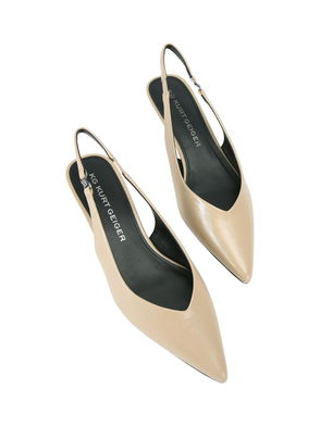 These Belgravia Eagle slingback courts from Kurt Geiger London arrive in leather. The pointed toe is topped with an antiqued gold eagle head and the quilted padded footbed offers all-day comfort.
