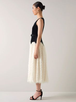 Embrace an elegant moment with this Astrid dress. Made from a viscose blend, it features ponte stretch fabric, a contrast trim at the neckline and cuffs, and a fit-and-flare silhouette that falls below the knee. Perfect for workwear or a dinner date, pair it with court shoes or ankle boots to complete the look.