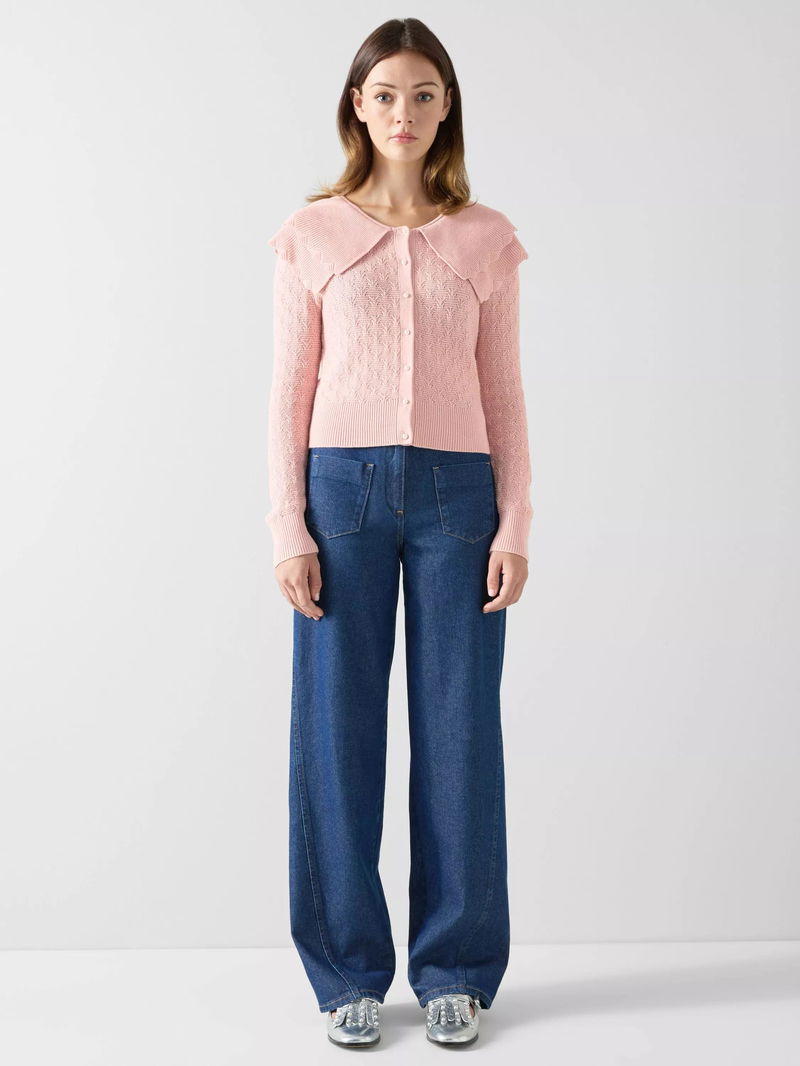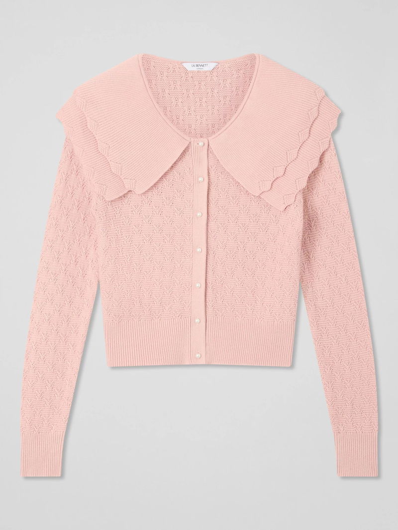 LKB London Pointelle Cardigan, Dusky Pink