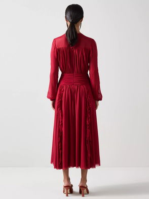 The Tabatha dress is a sculptured masterpiece in a Milano knit. This fit-and-flare silhouette, crafted from a viscose blend, features a crew neck and exaggerated full-length sleeves. Perfect for pairing with statement heels or delicate jewellery.