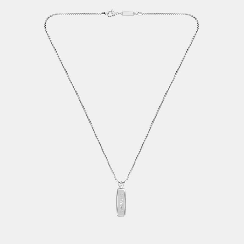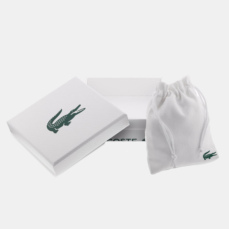 The focal point of each elegant piece is its tag-style pendant or plaque, which features the Lacoste logo on one side, and four timeless icons on the other: tennis ball, crocodile, Lacoste L, and Paris motifs.