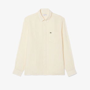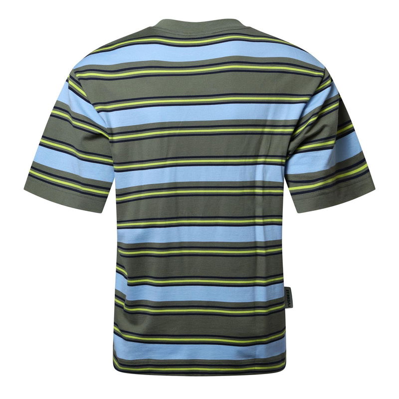 Mens Lacoste T- Shirt in khaki. Ribbed crewneck. Short sleeves. Embroidered logo on the front. Striped design. Loose fit.