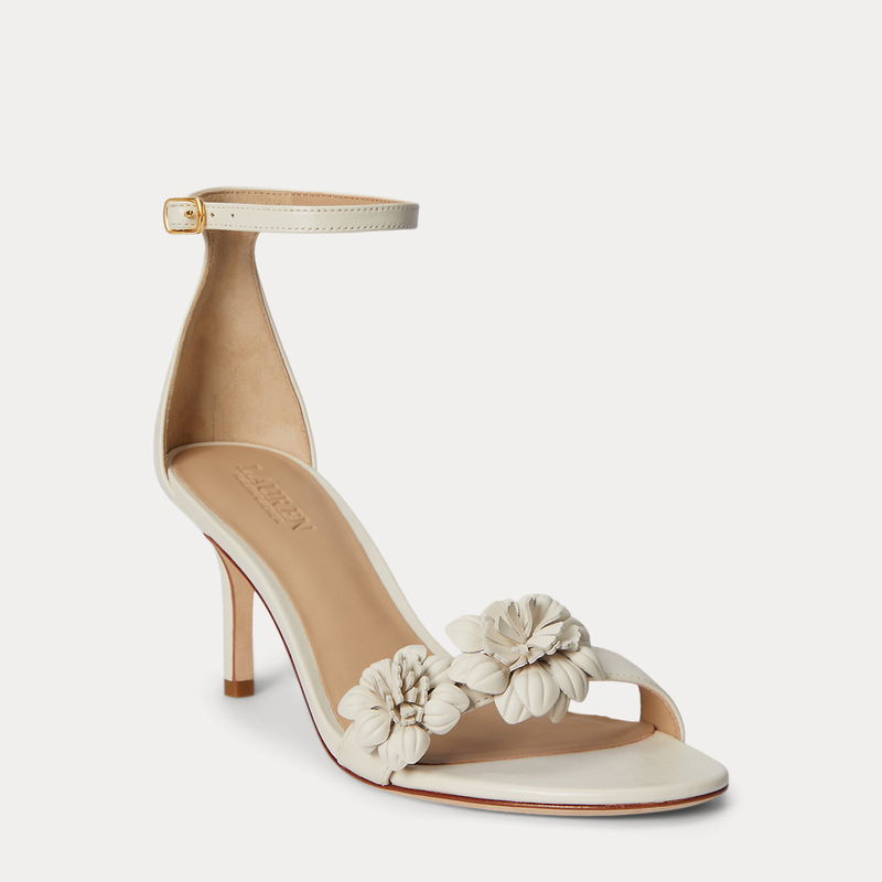 Crafted from sumptuous nappa leather, this enchanting version of the Allie mid-heel sandal features three-dimensional floral leather embellishments on the vamp.