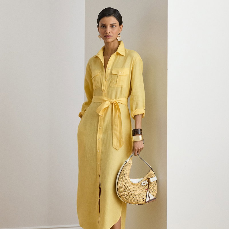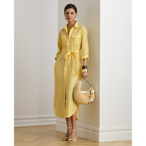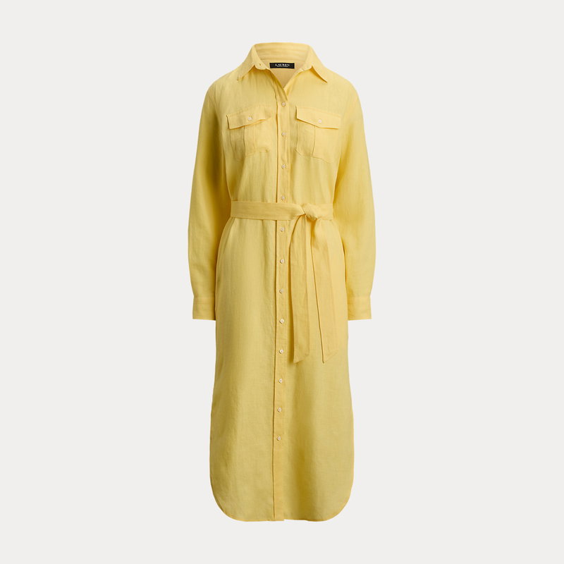 Belted Linen Midi Shirt Dress