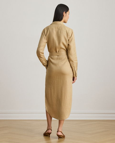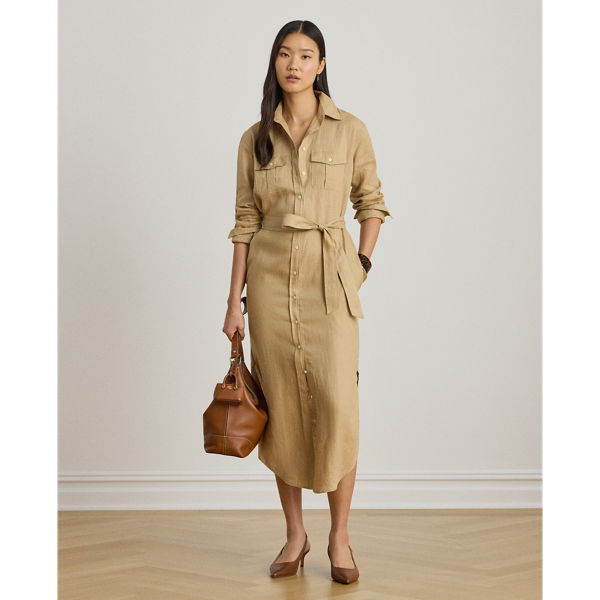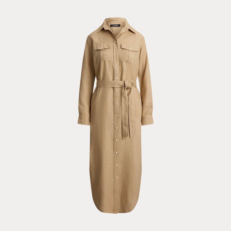 Belted Linen Midi Shirtdress