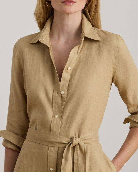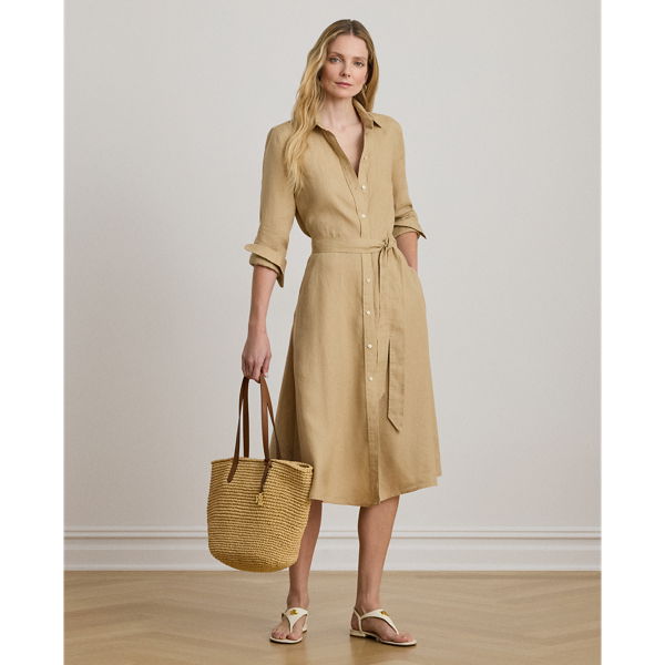 An iconic Lauren Ralph Lauren Lauren style, this shirtdress features an A-line silhouette crafted from airy linen. A self-belt accentuates the waist, while “Lauren Ralph Lauren Lauren”-engraved buttons add a signature finish.