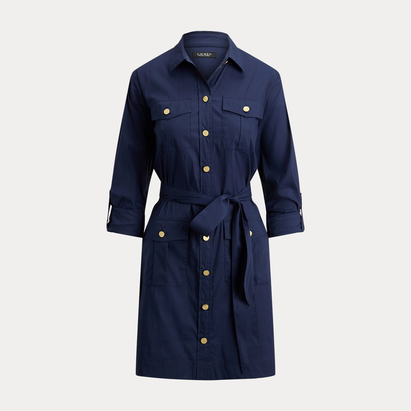 Cotton-Blend Roll-Tab-Sleeve Shirt Dress